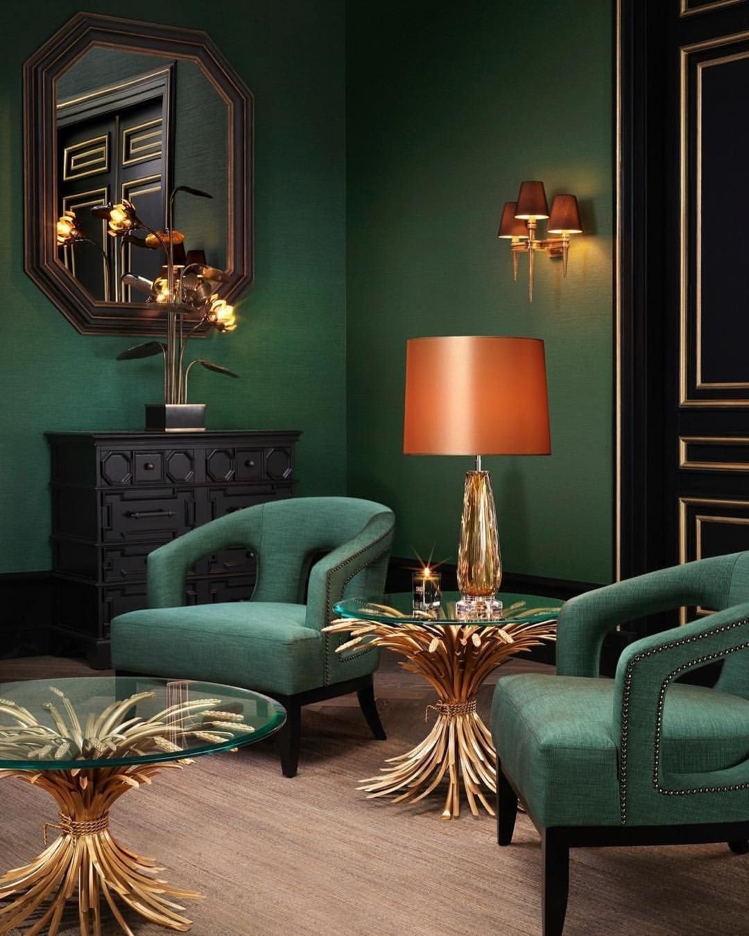 Изумрудный и золотой в интерьере