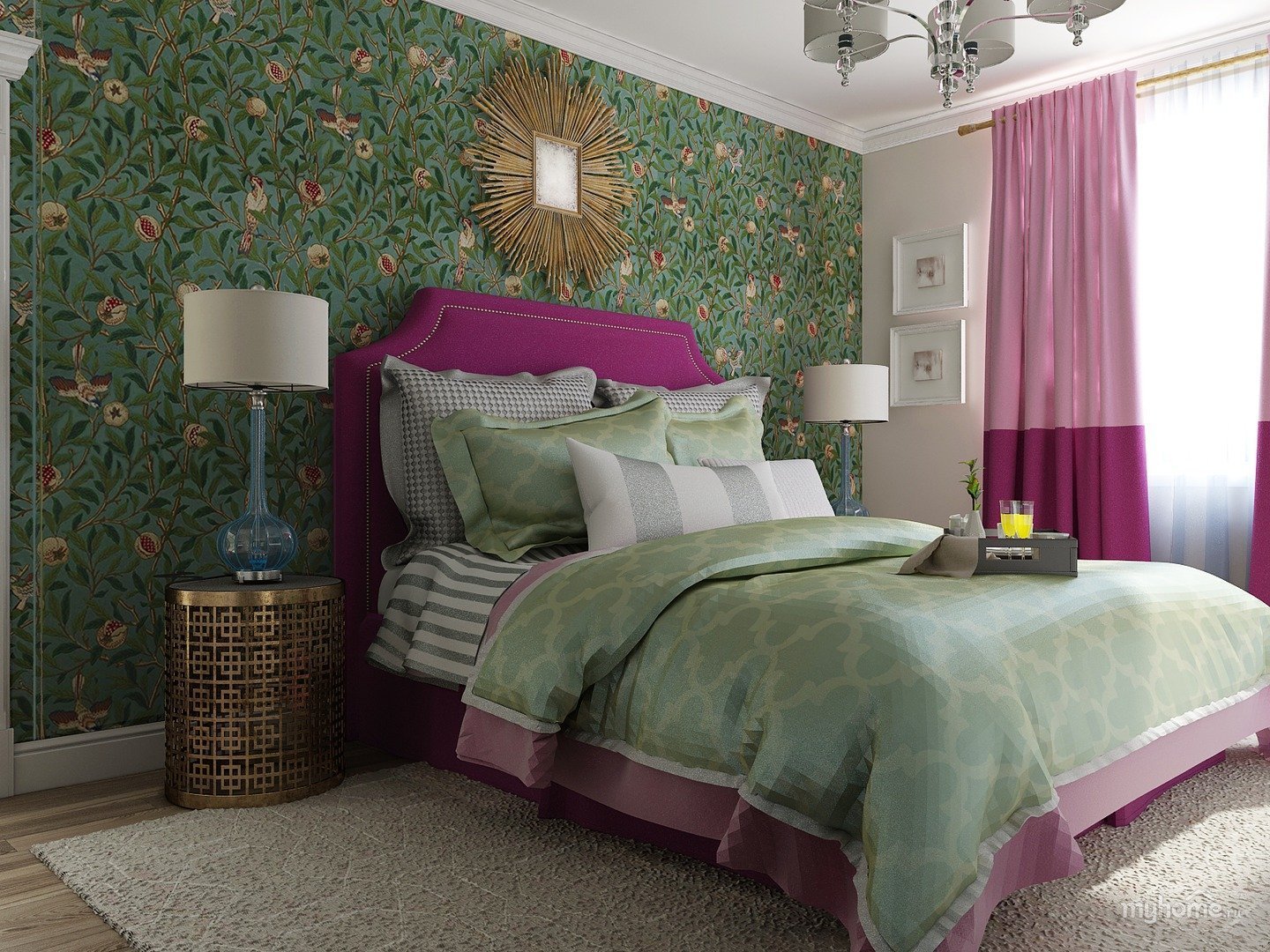Красно зеленая спальня