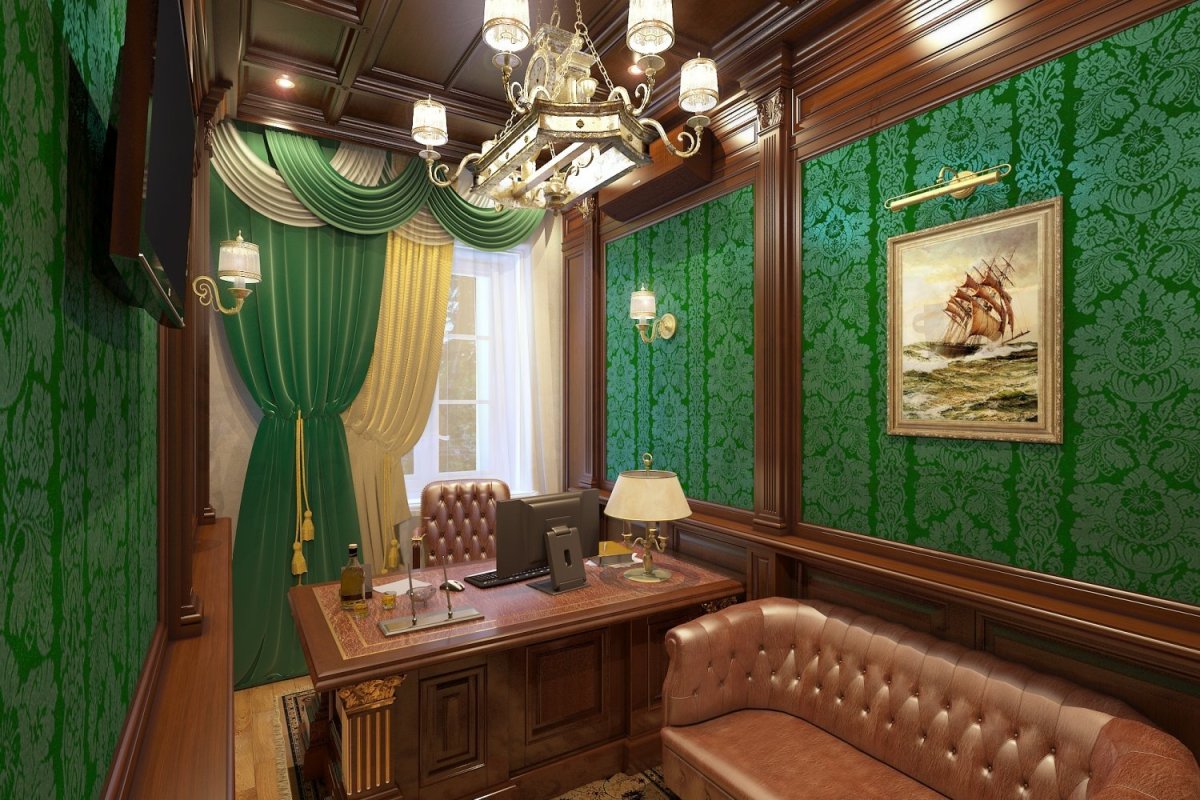 Кабинет с зелеными стенами