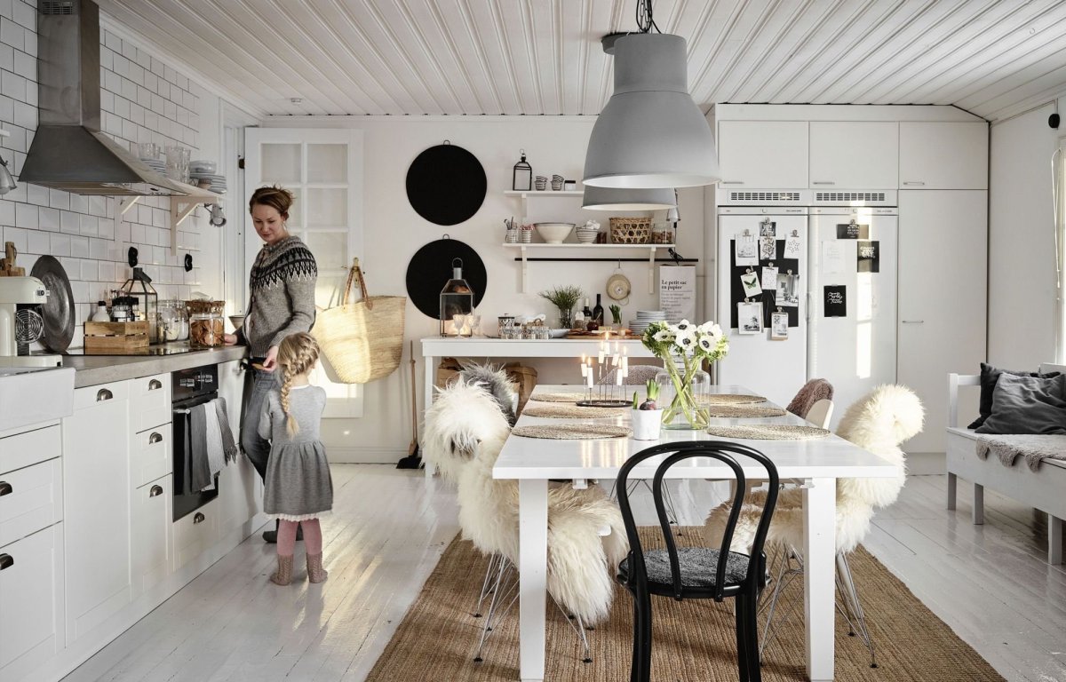 Интерьер столовой в скандинавском Кантри
