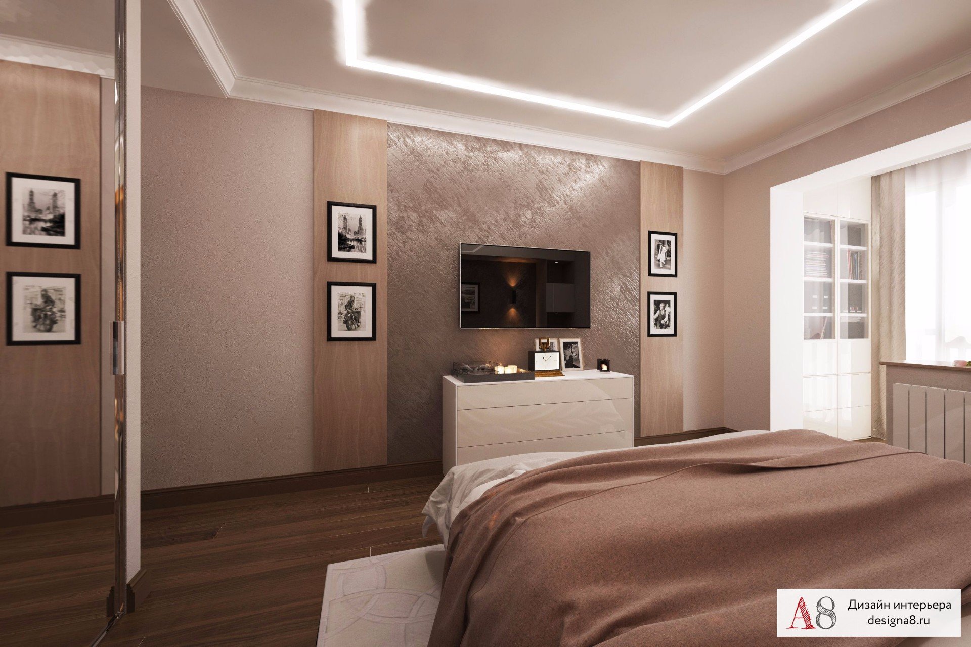 Спальня в шоколадно бежевых тонах