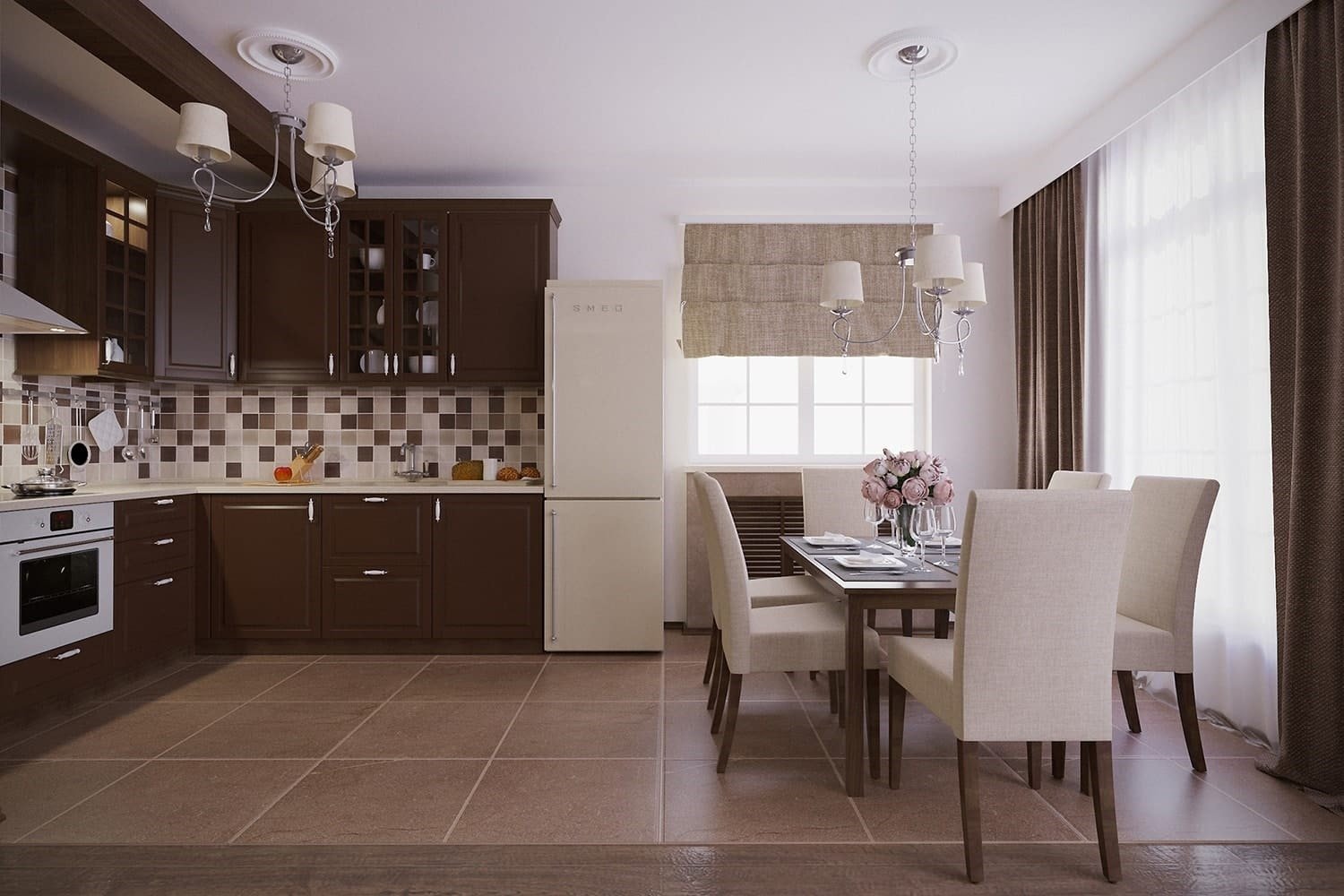 Дизайнер столовой в цвете мокко