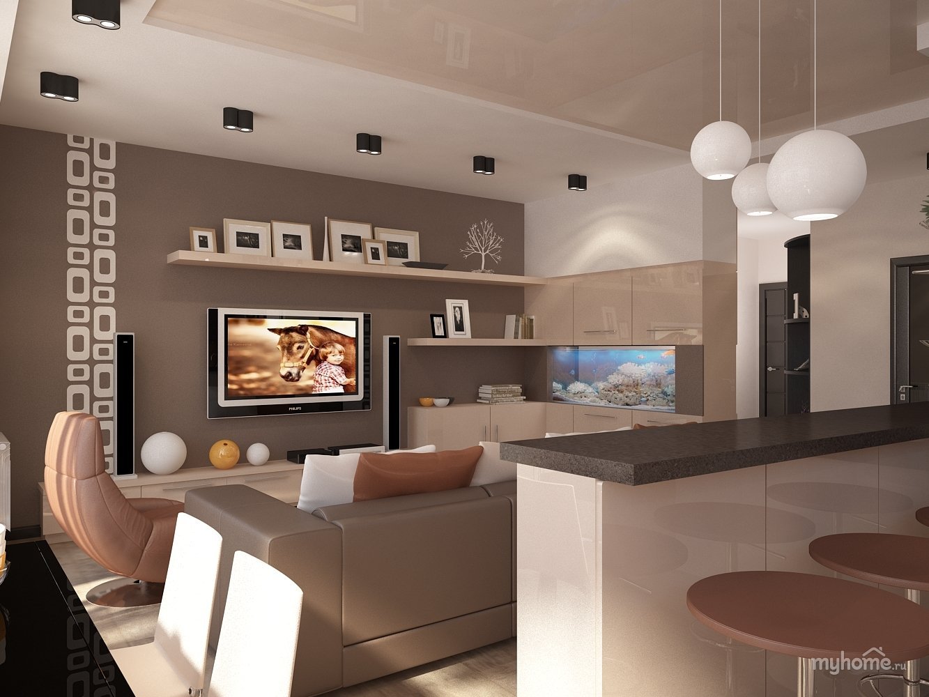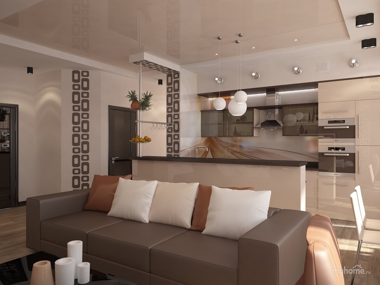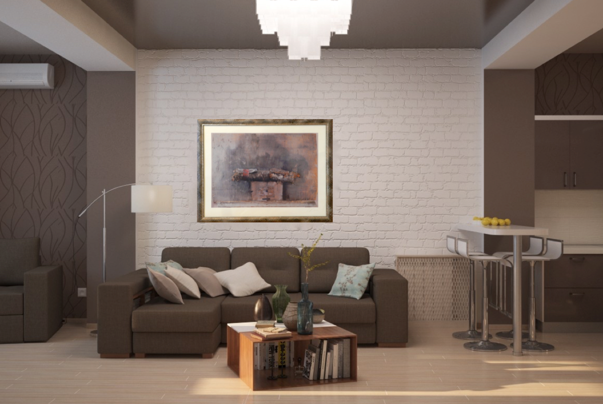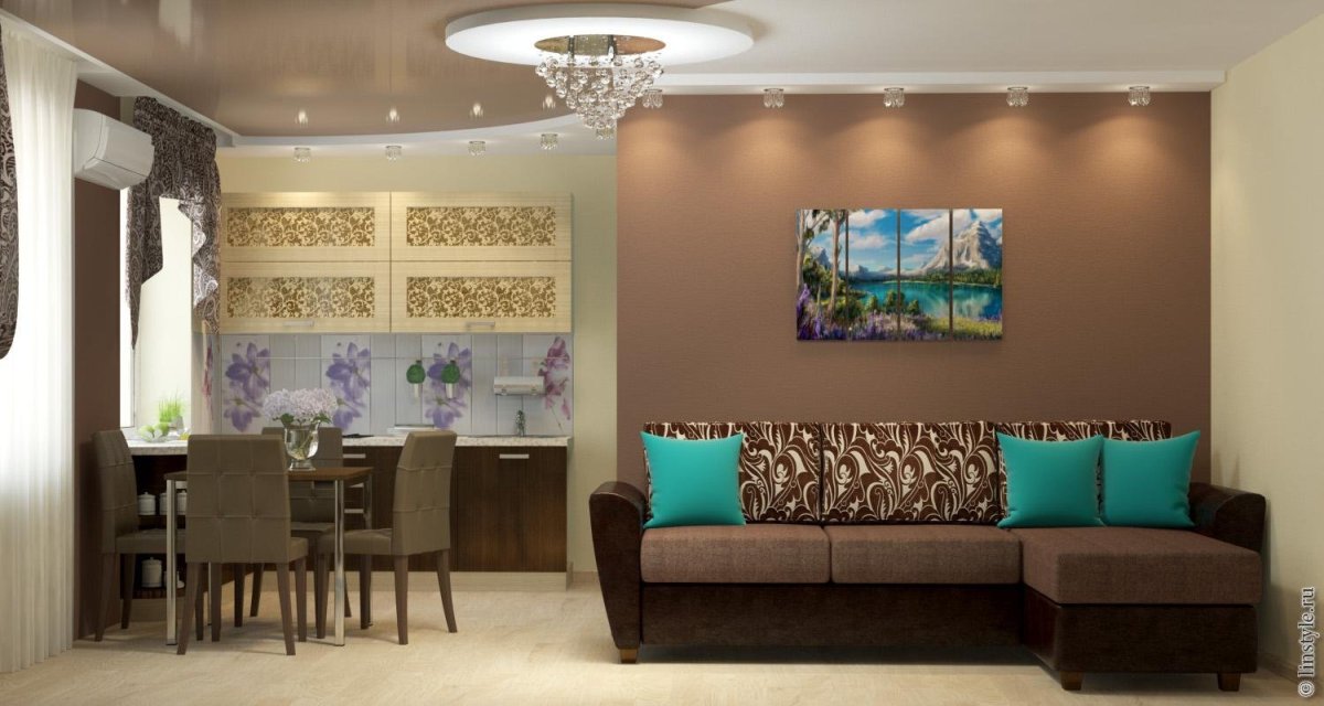 Гостиная с кухней кофейные оттенки