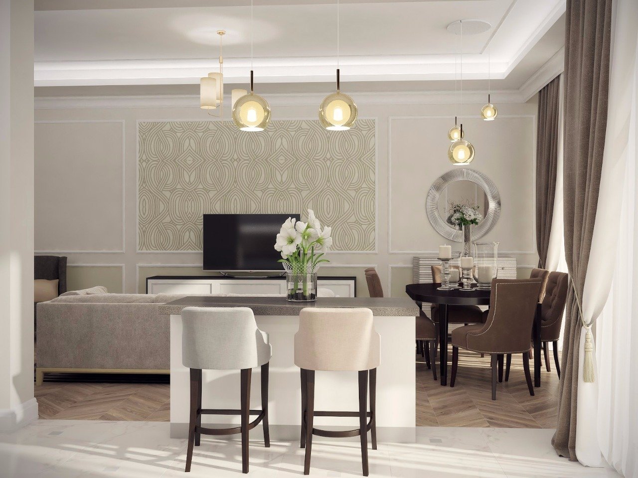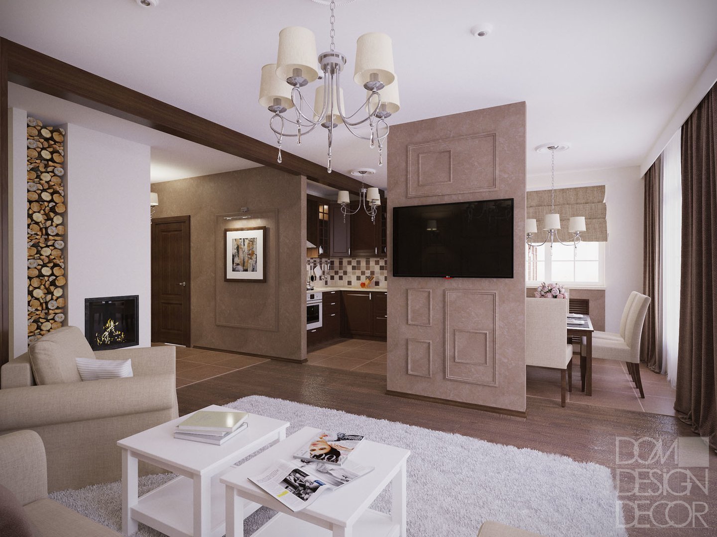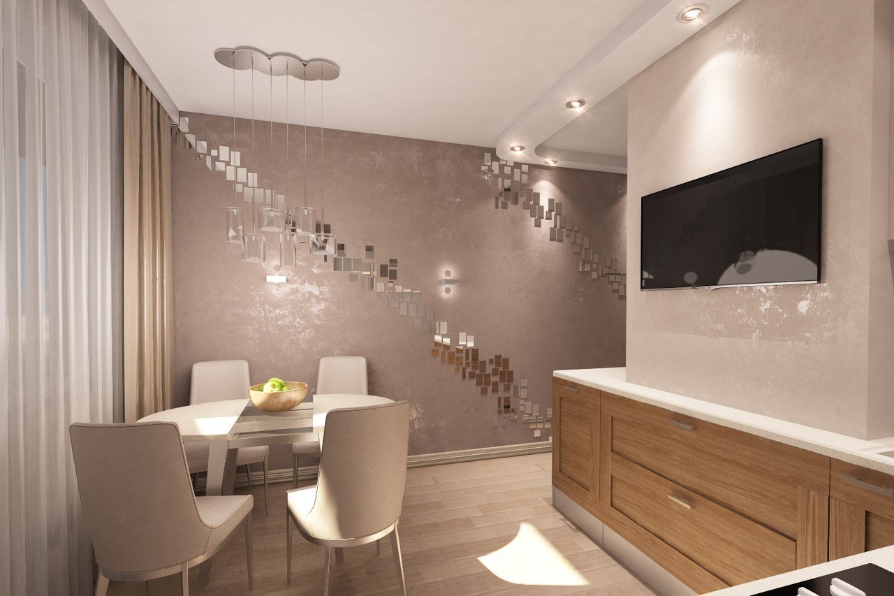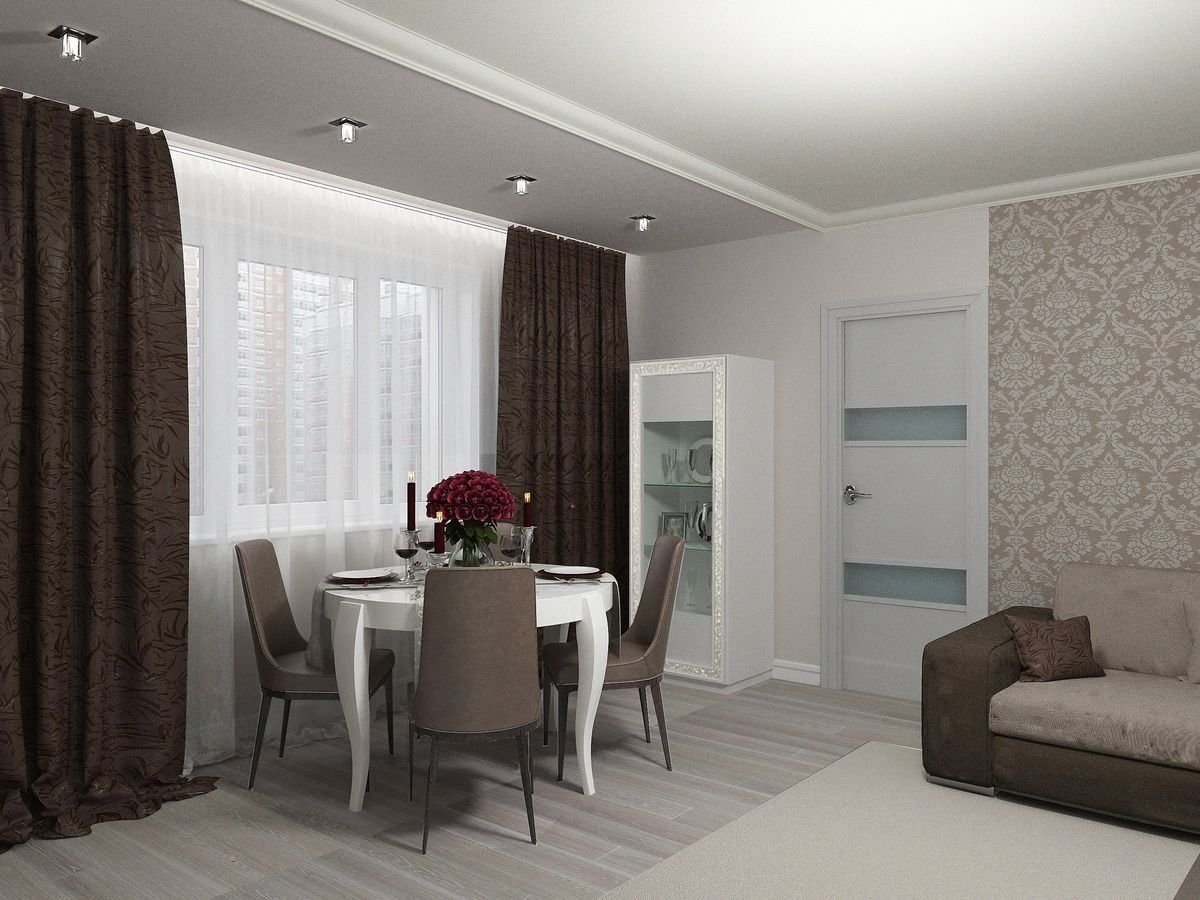 Гостиная с кухней кофейные оттенки