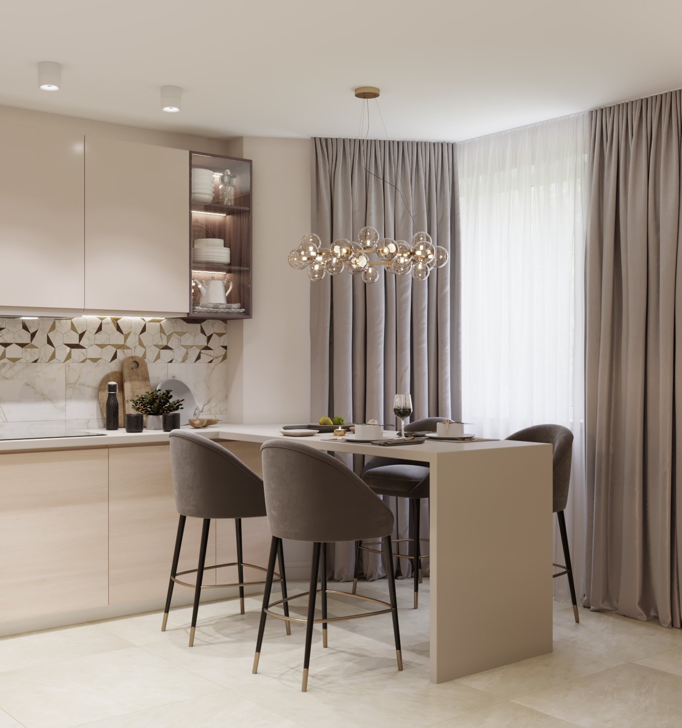 Серо бежевая кухня