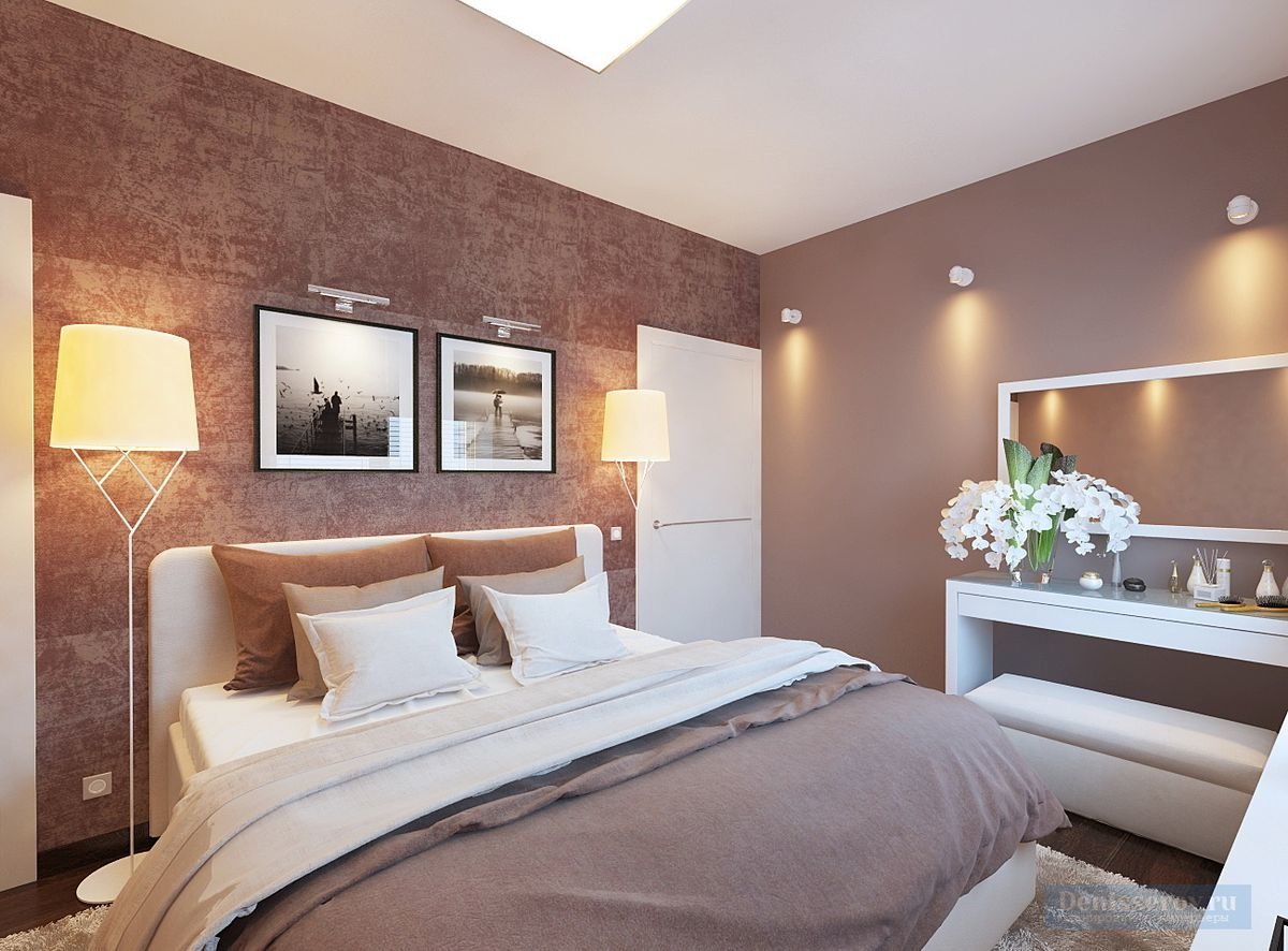 Спальня цвета какао с молоком