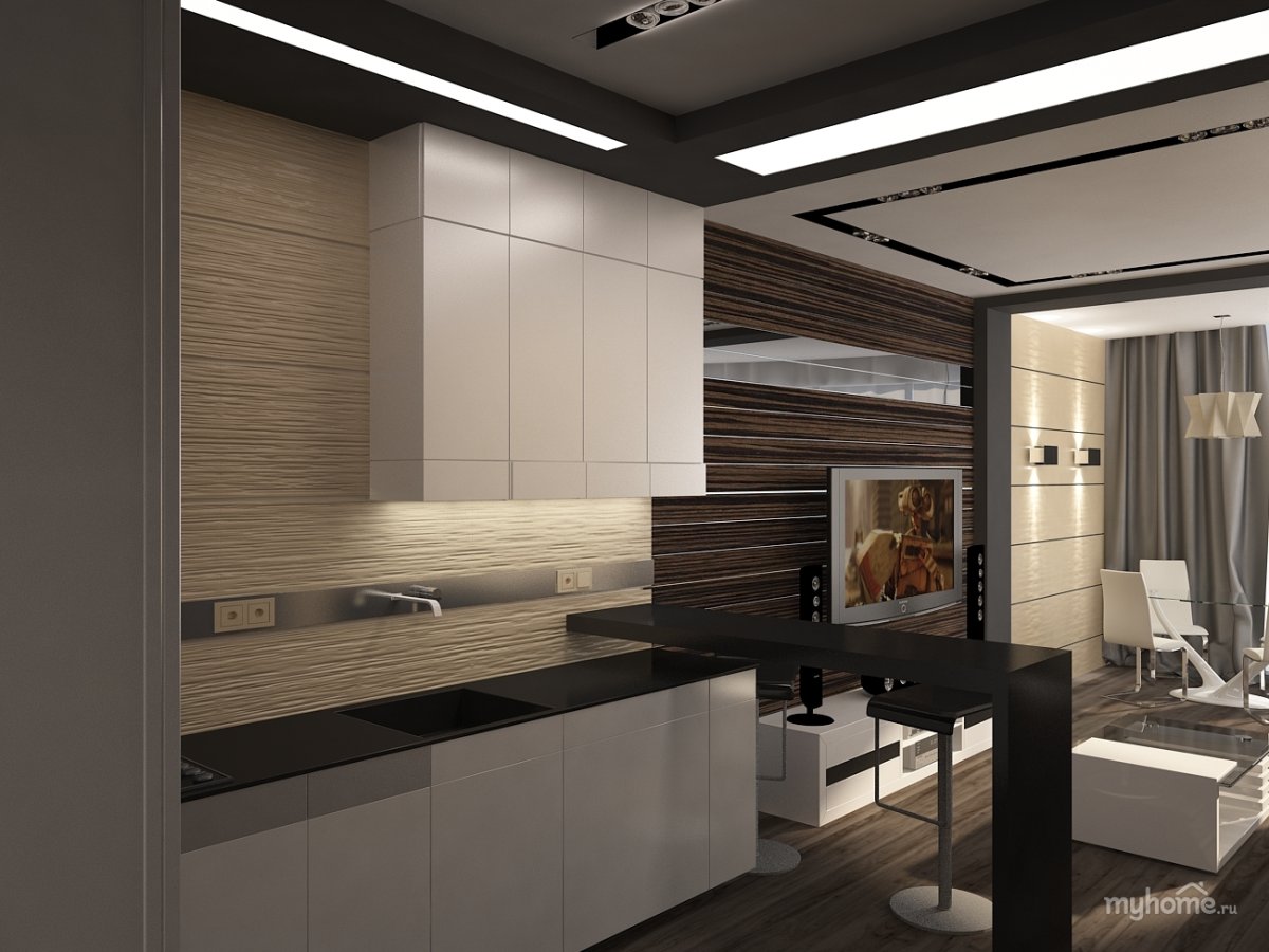 Кухня гостиная в коричневых тонах