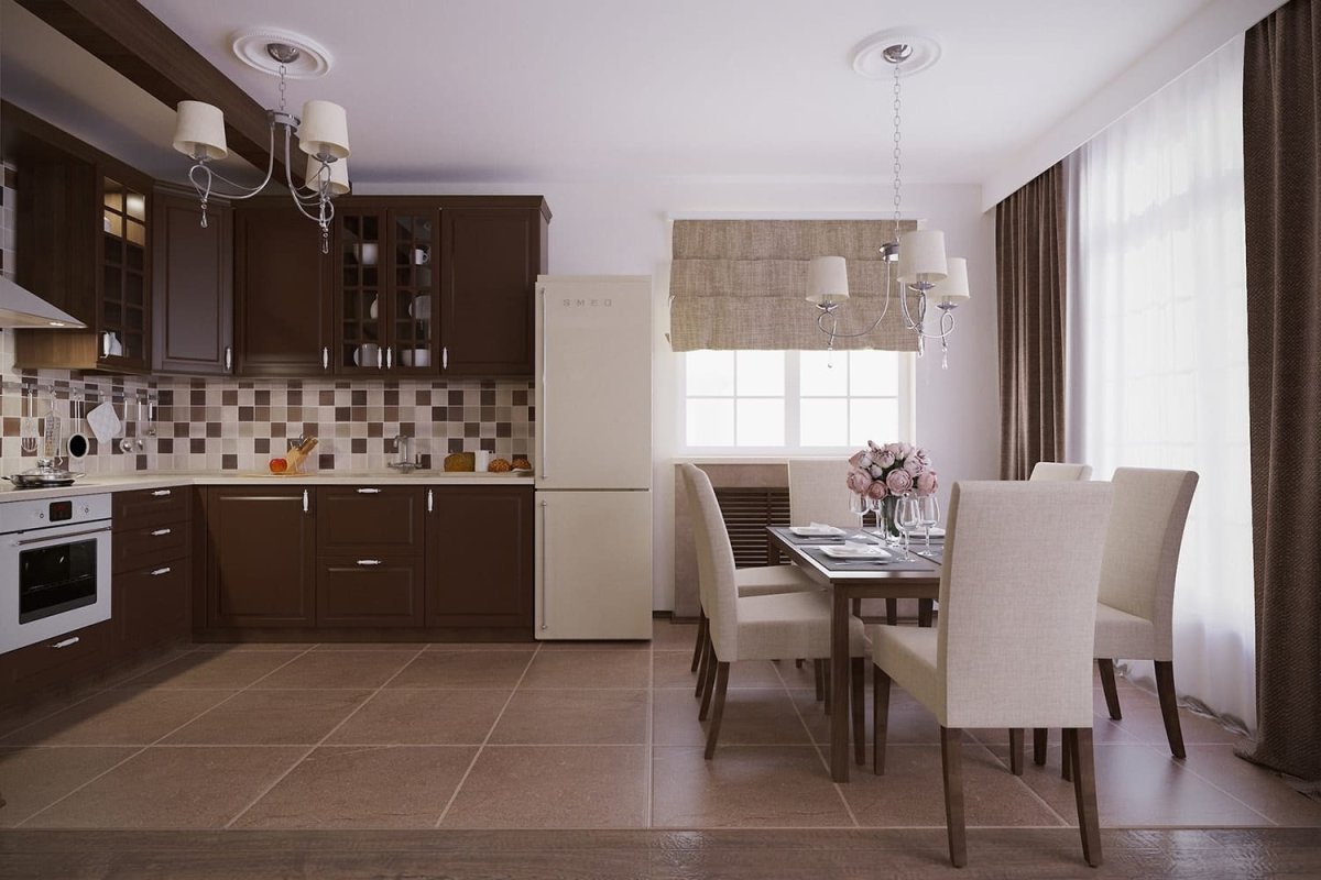 Кухня гостиная в кофейных тонах