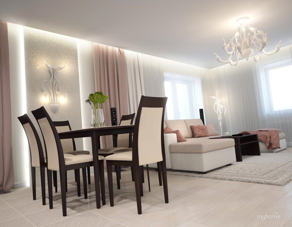 Кухня гостиная бело коричневая