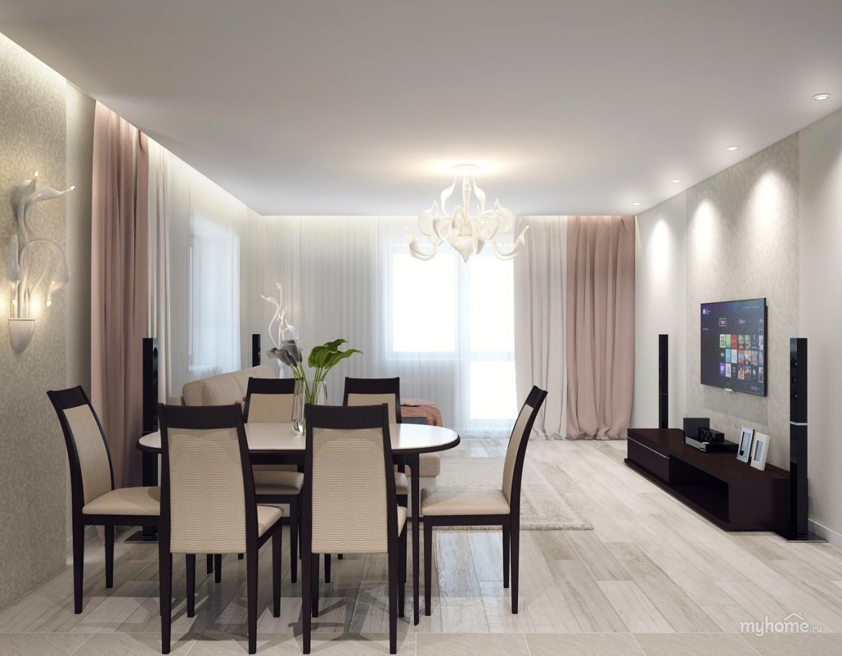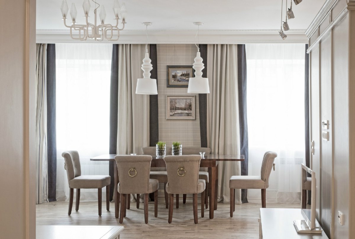 Кухня-гостиная шторы на 2 окна