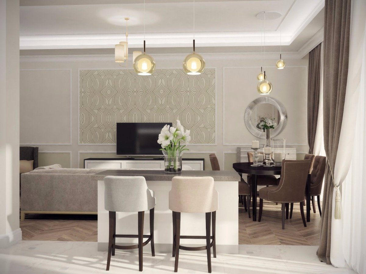 Кухня гостиная в цвете капучино