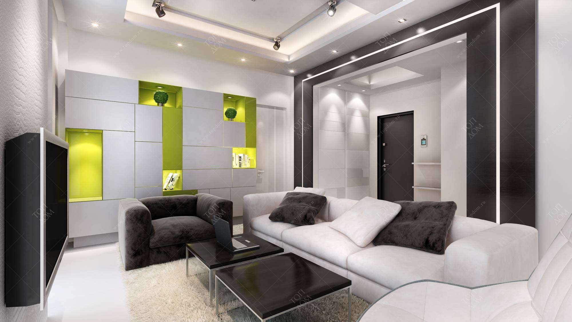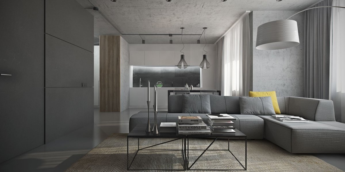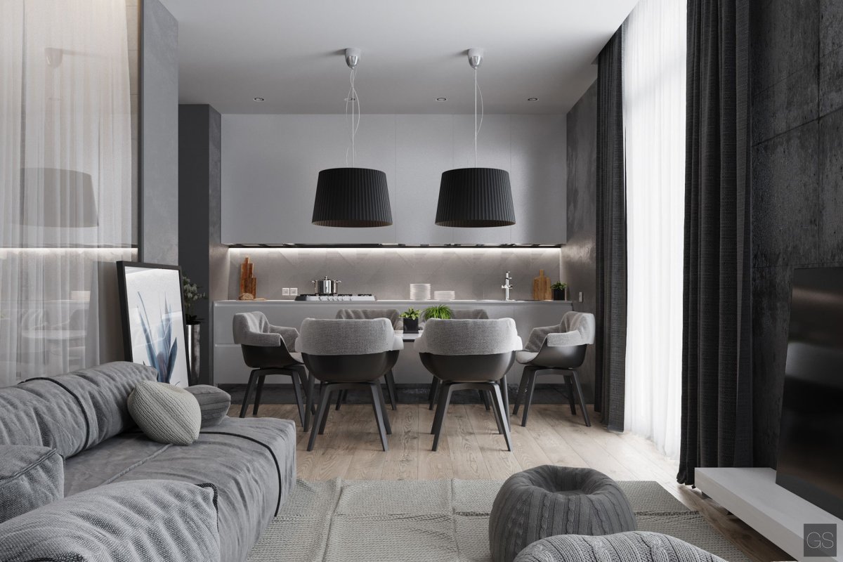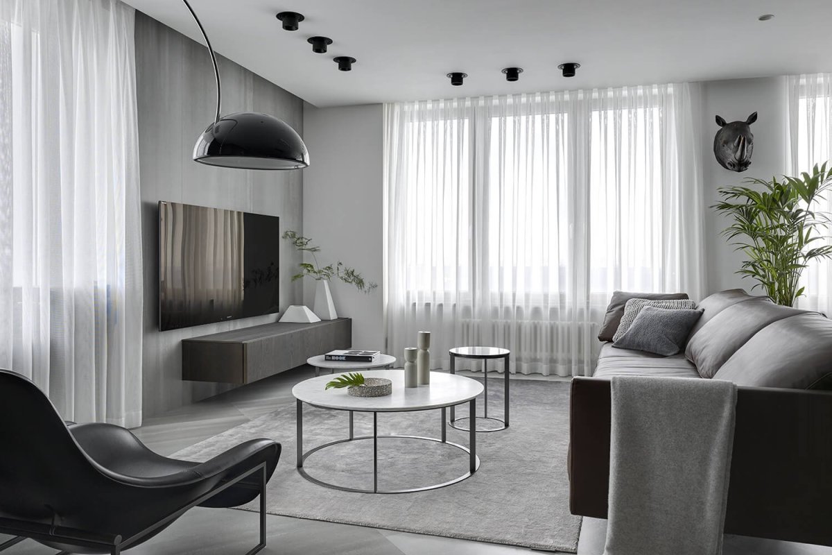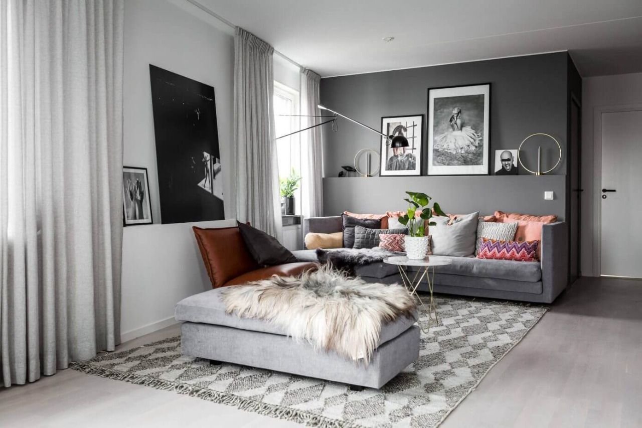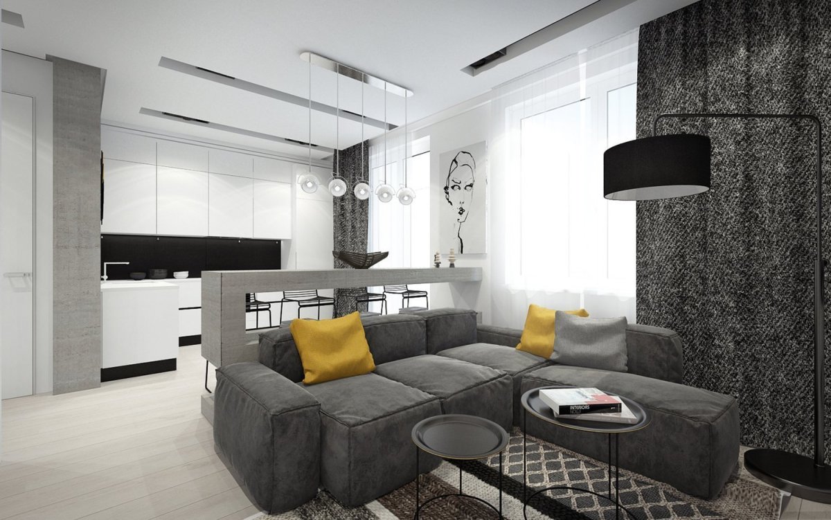 Интерьер квартиры в черно белых тонах с яркими акцентами
