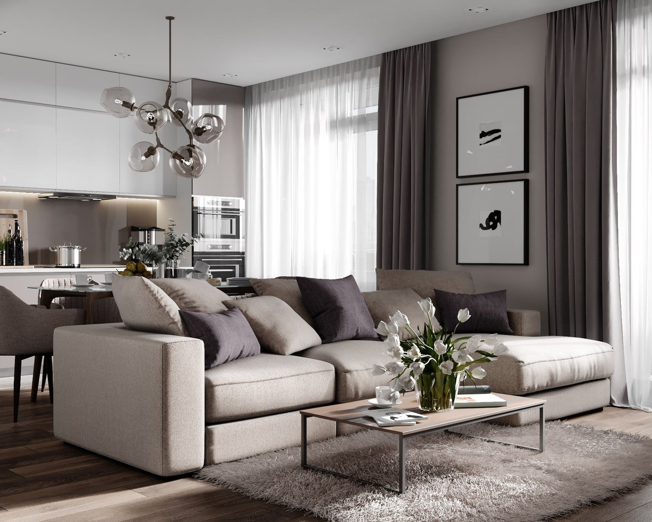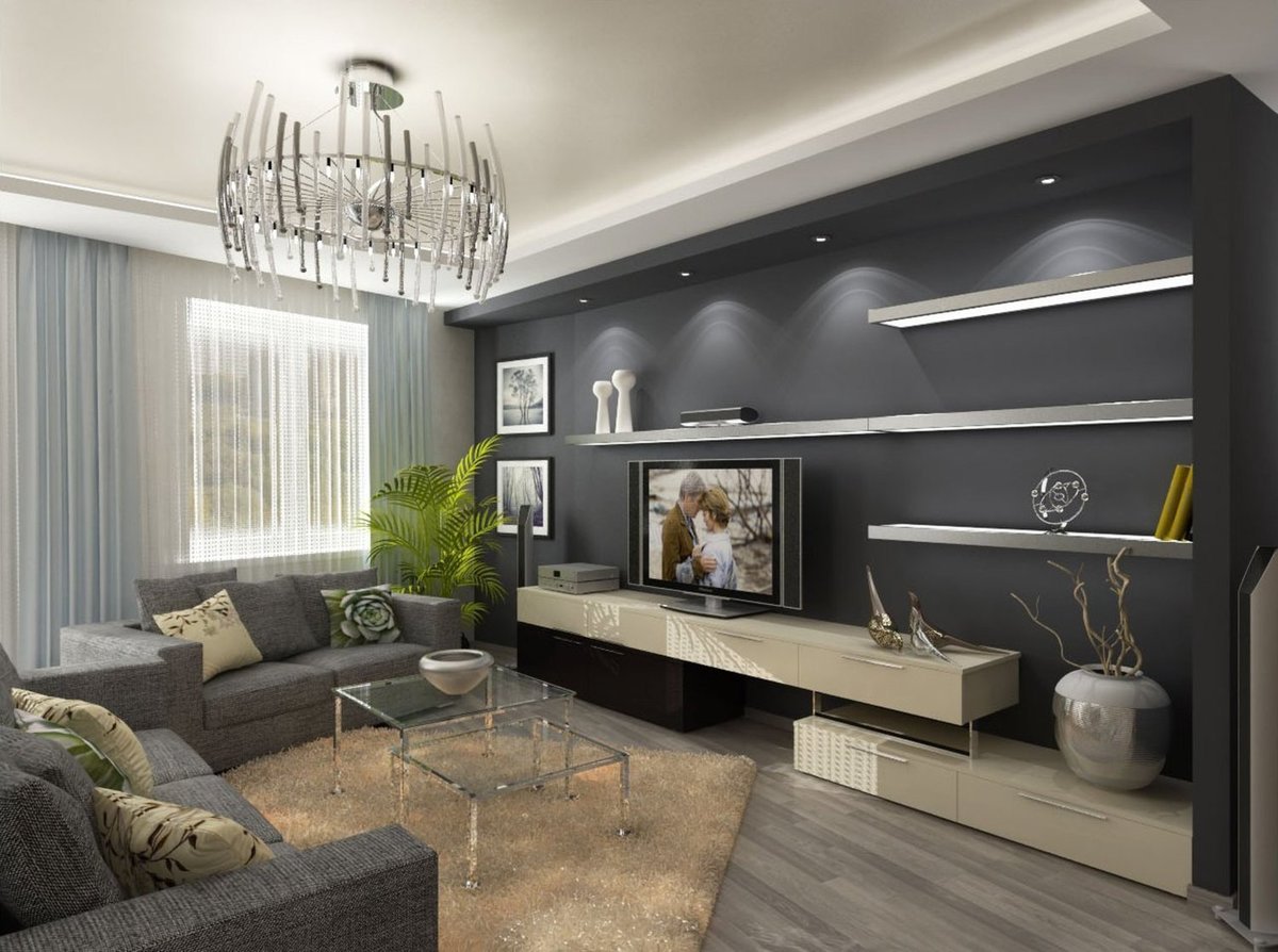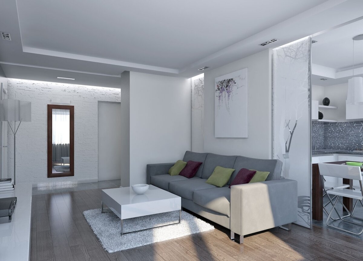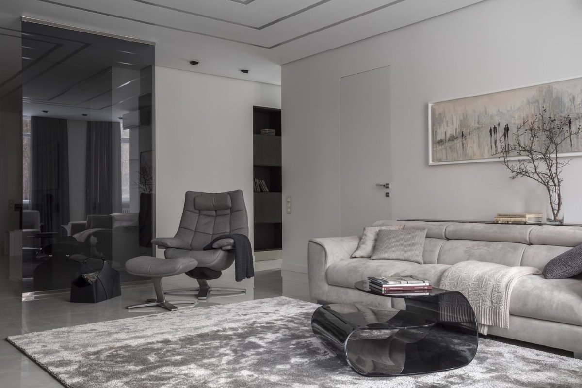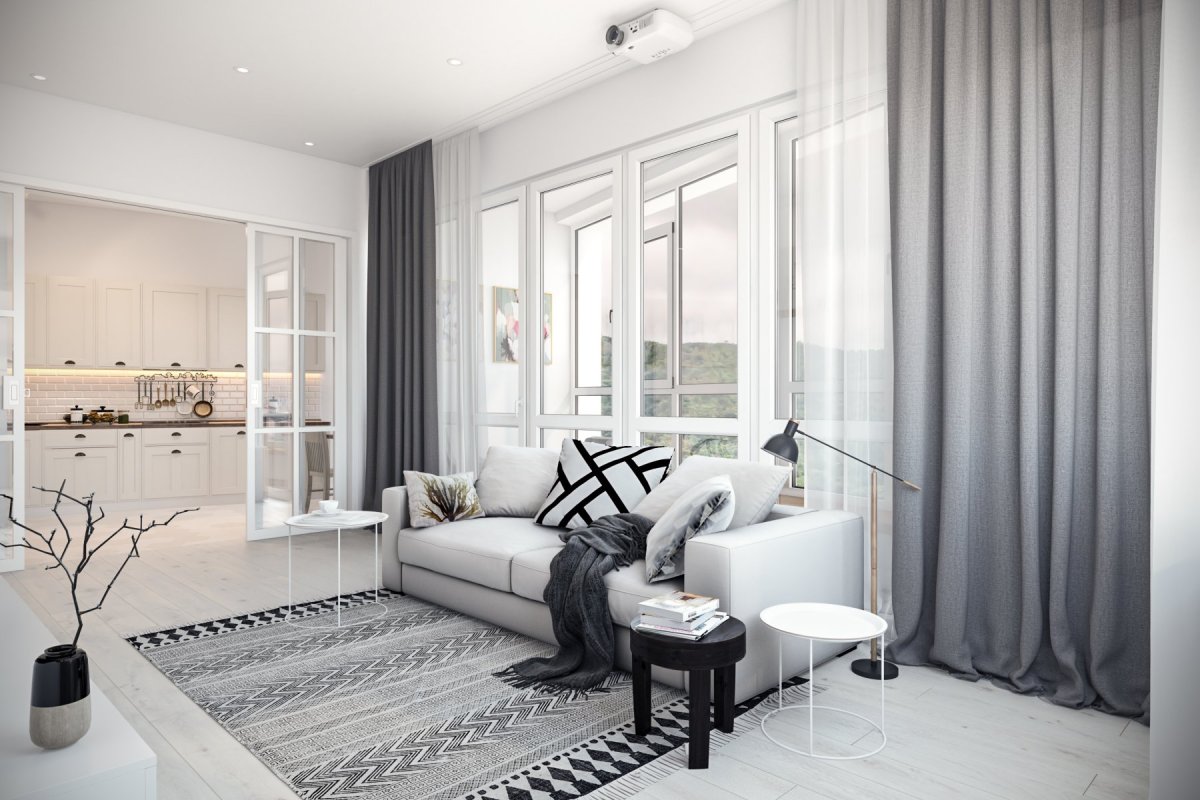 Интерьер квартиры в черно белых тонах с яркими акцентами