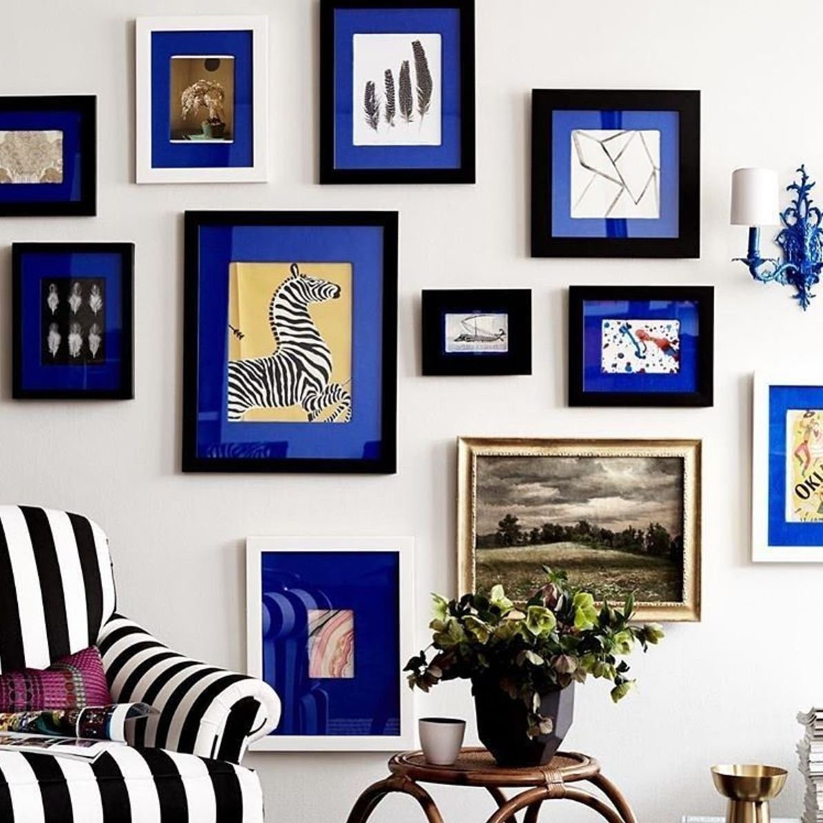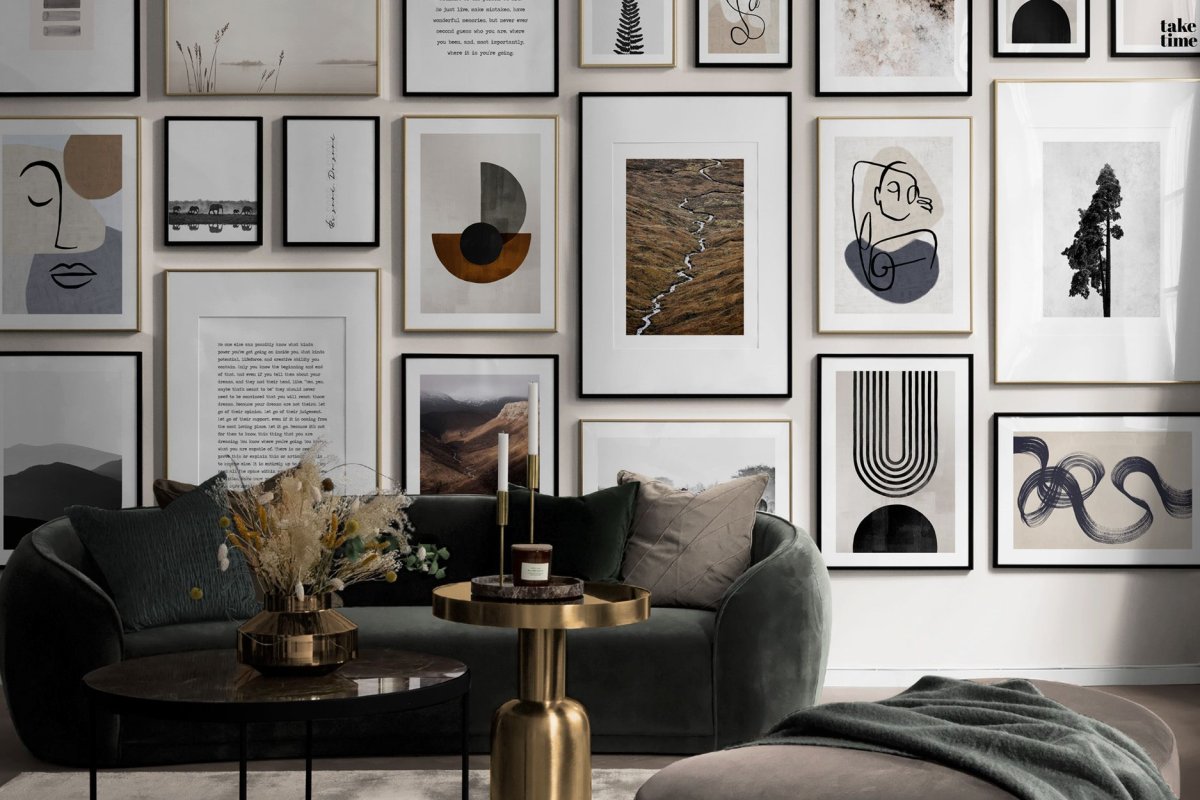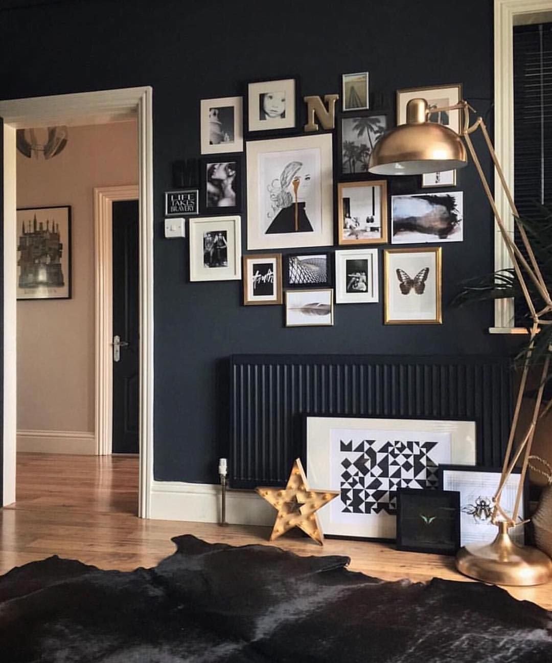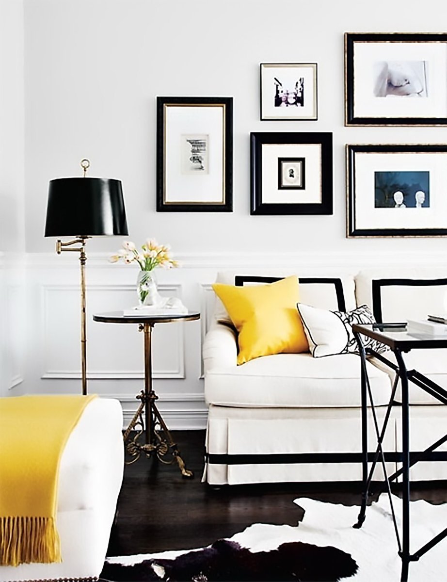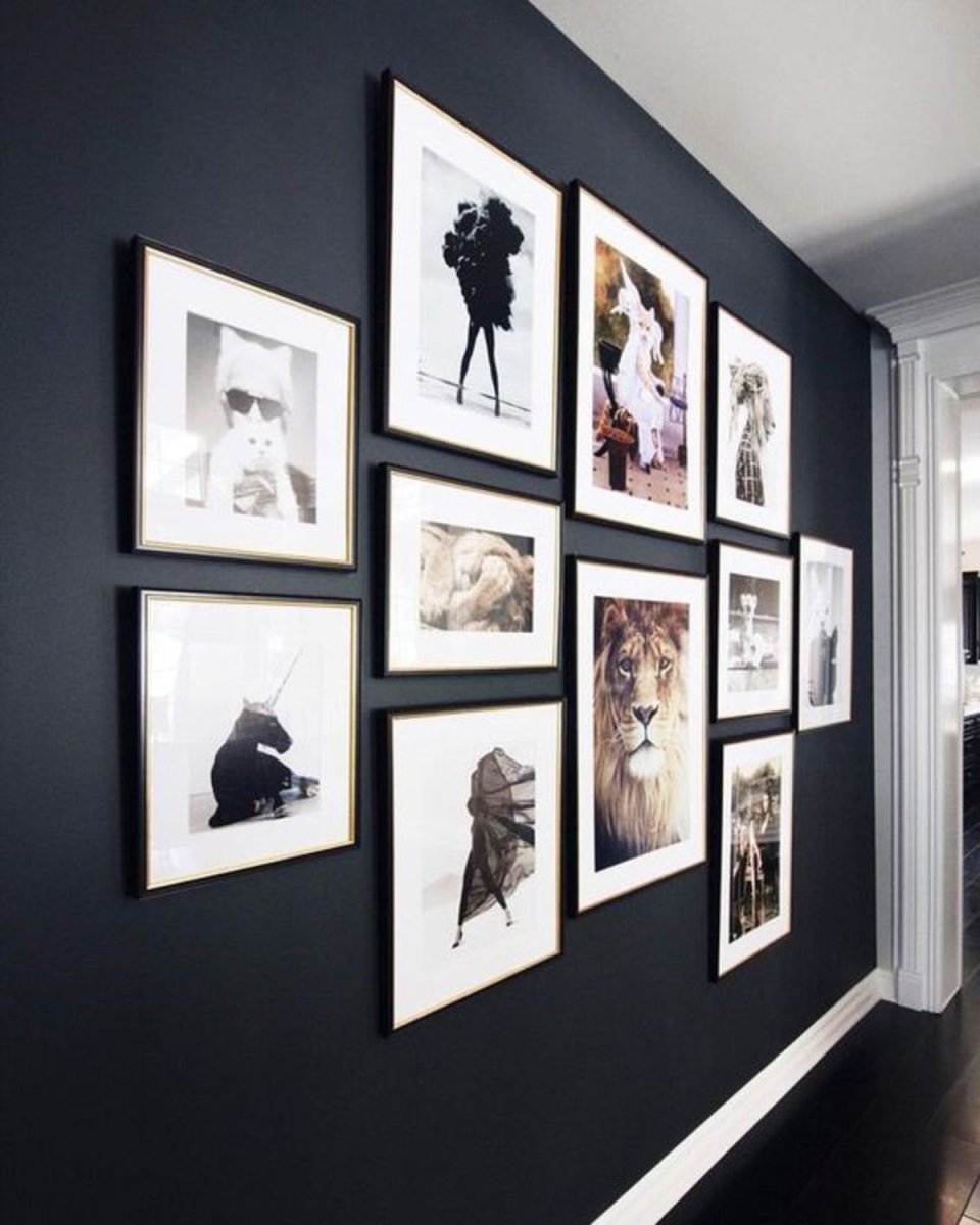 Черные и золотые рамки в интерьере