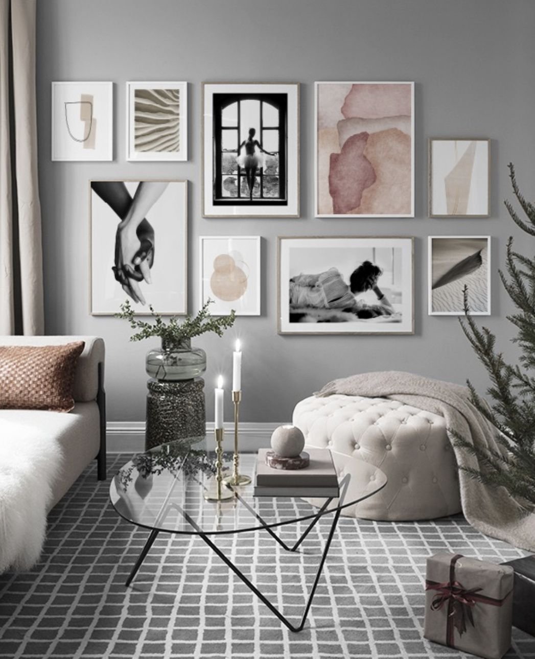Композиция из фотографий на стене