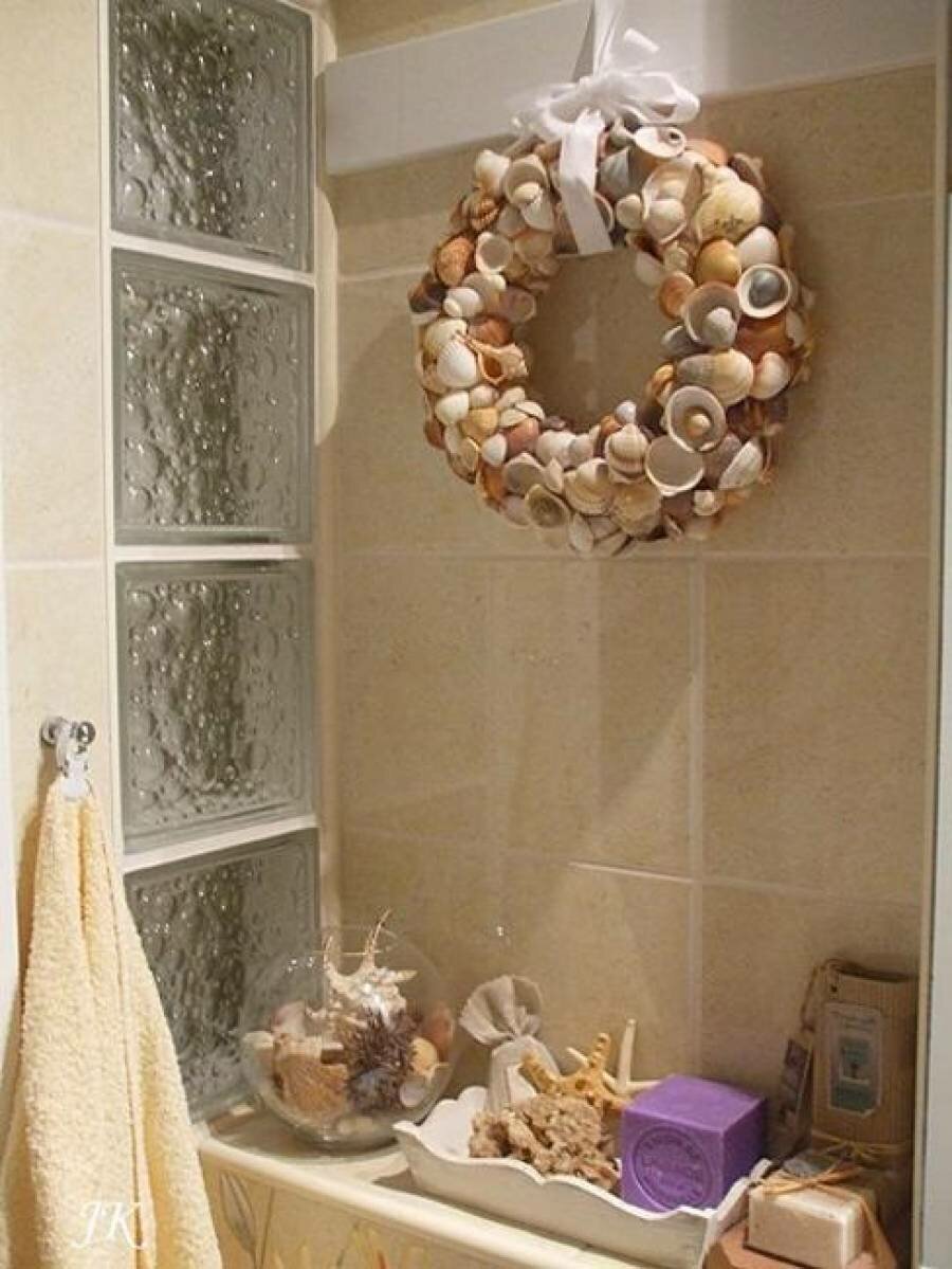 Декор из ракушек в ванную комнату