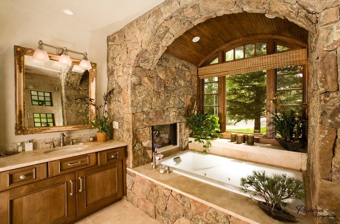 Декор ванной комнаты искусственным камнем