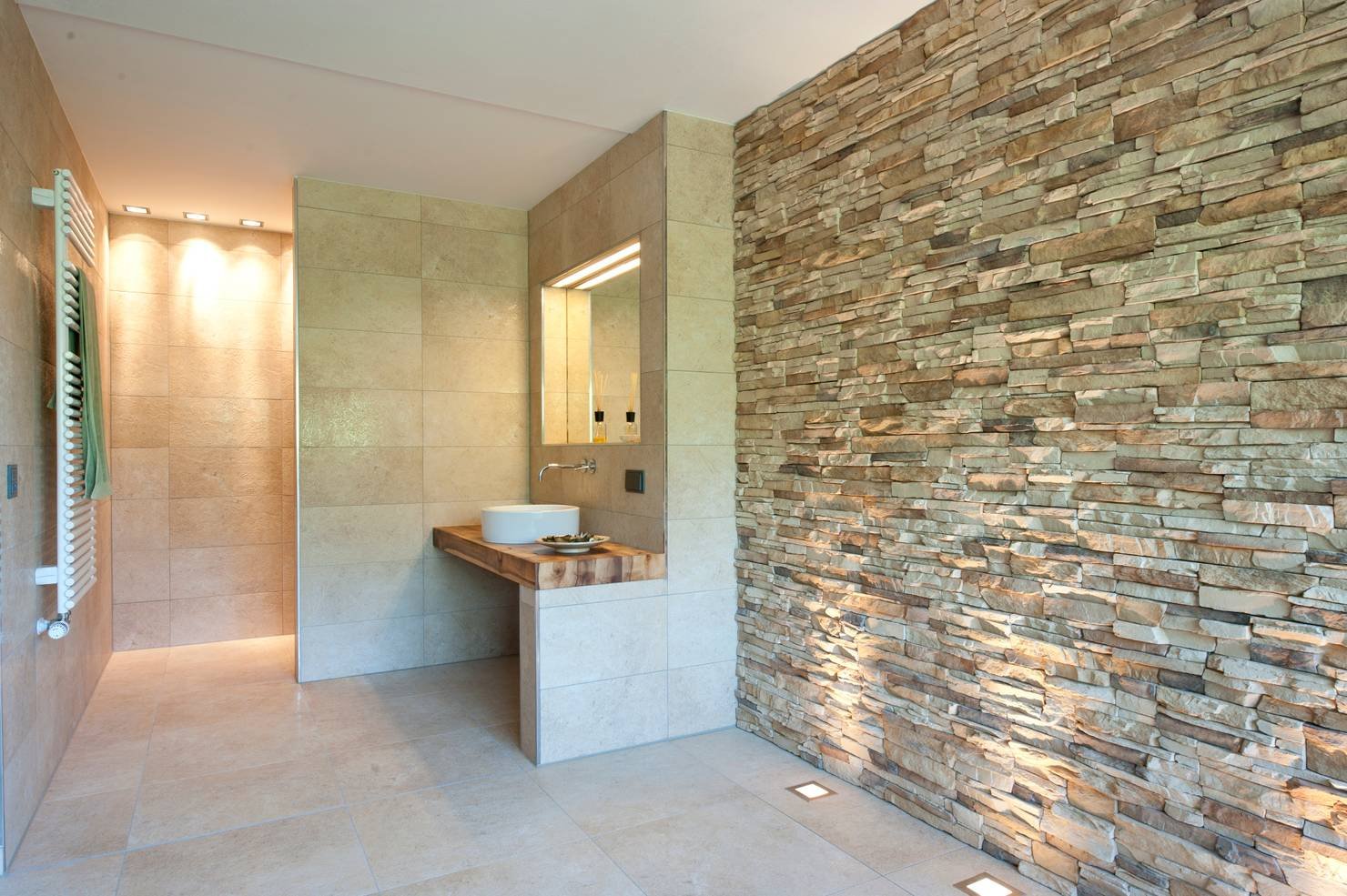 Декоративный камень в ванной комнате