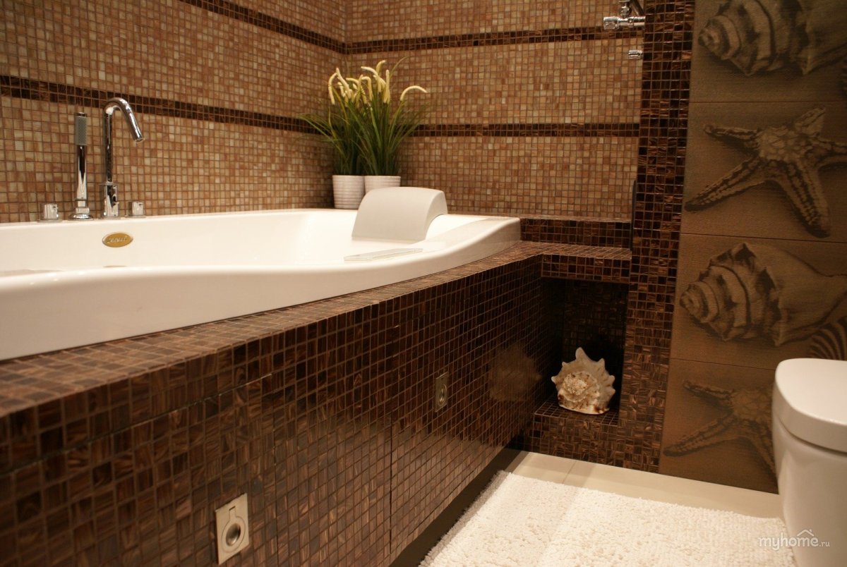 Коричневая мозаика в ванной