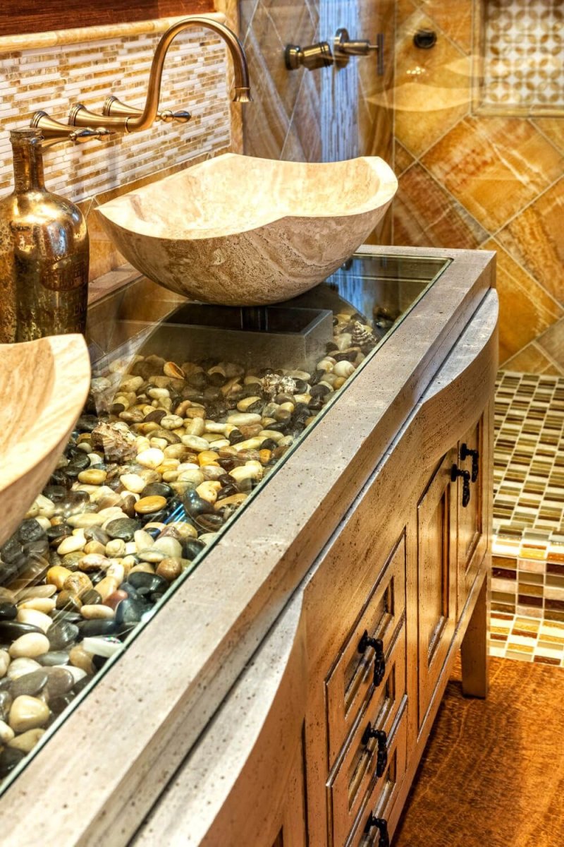 Галька в интерьере ванной комнаты
