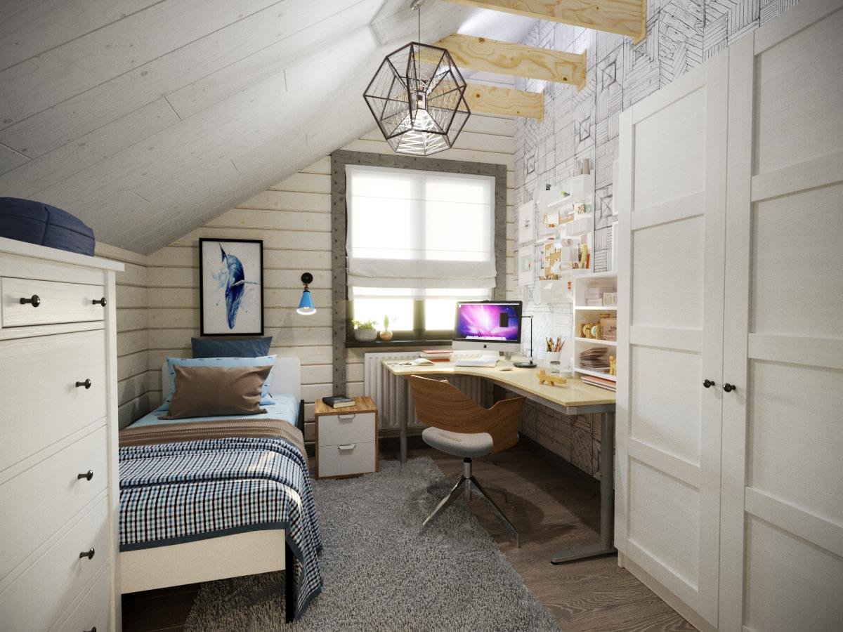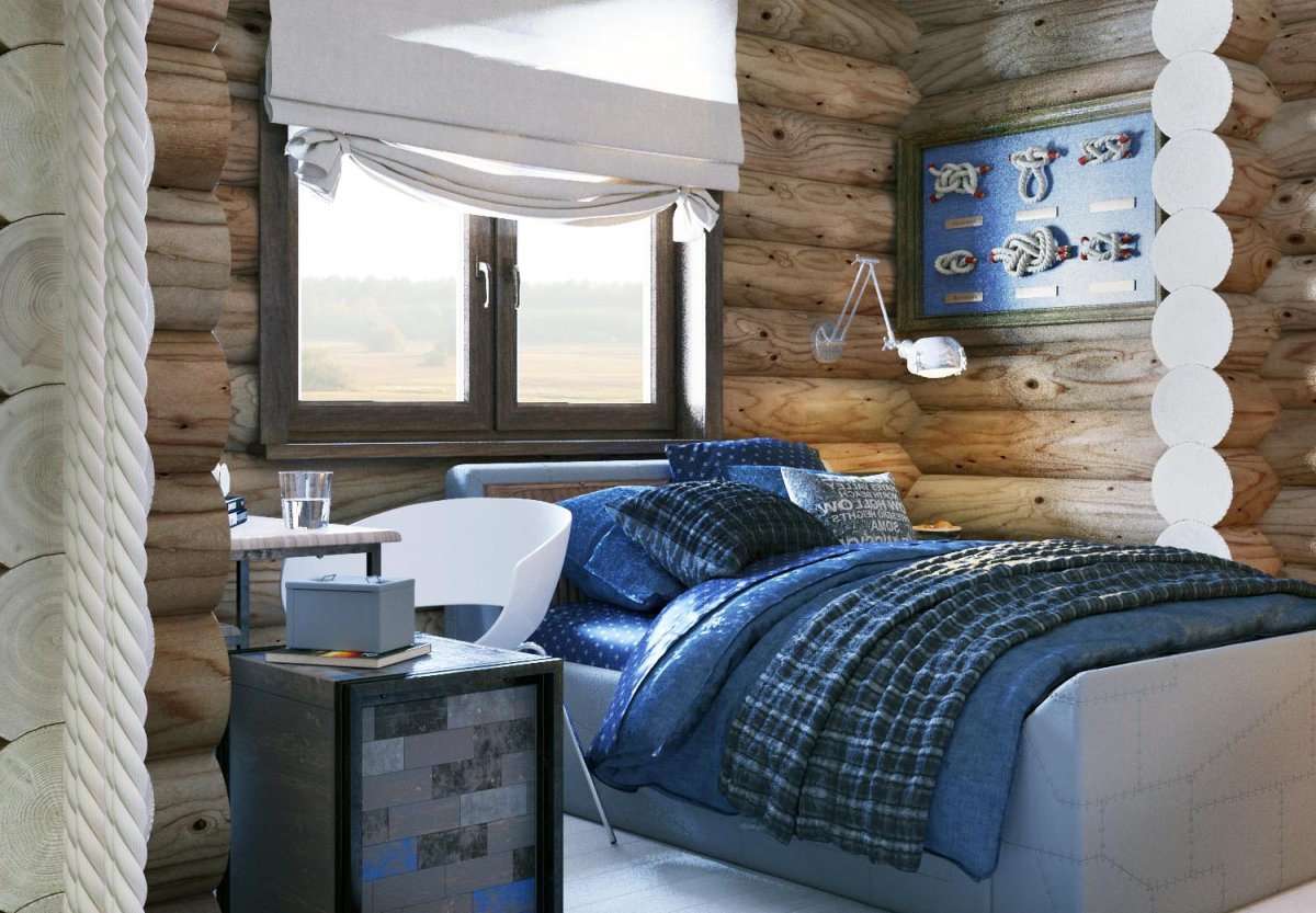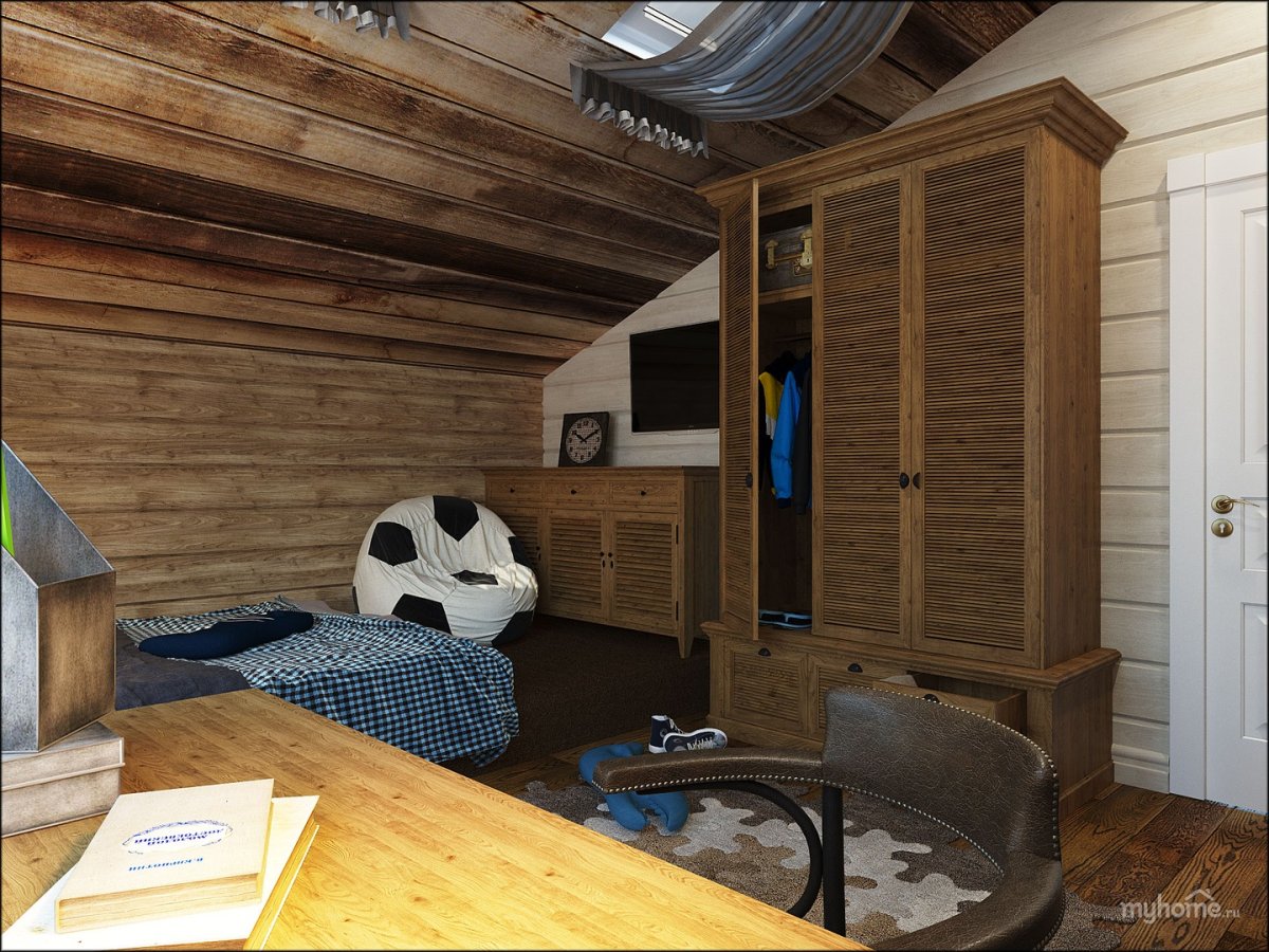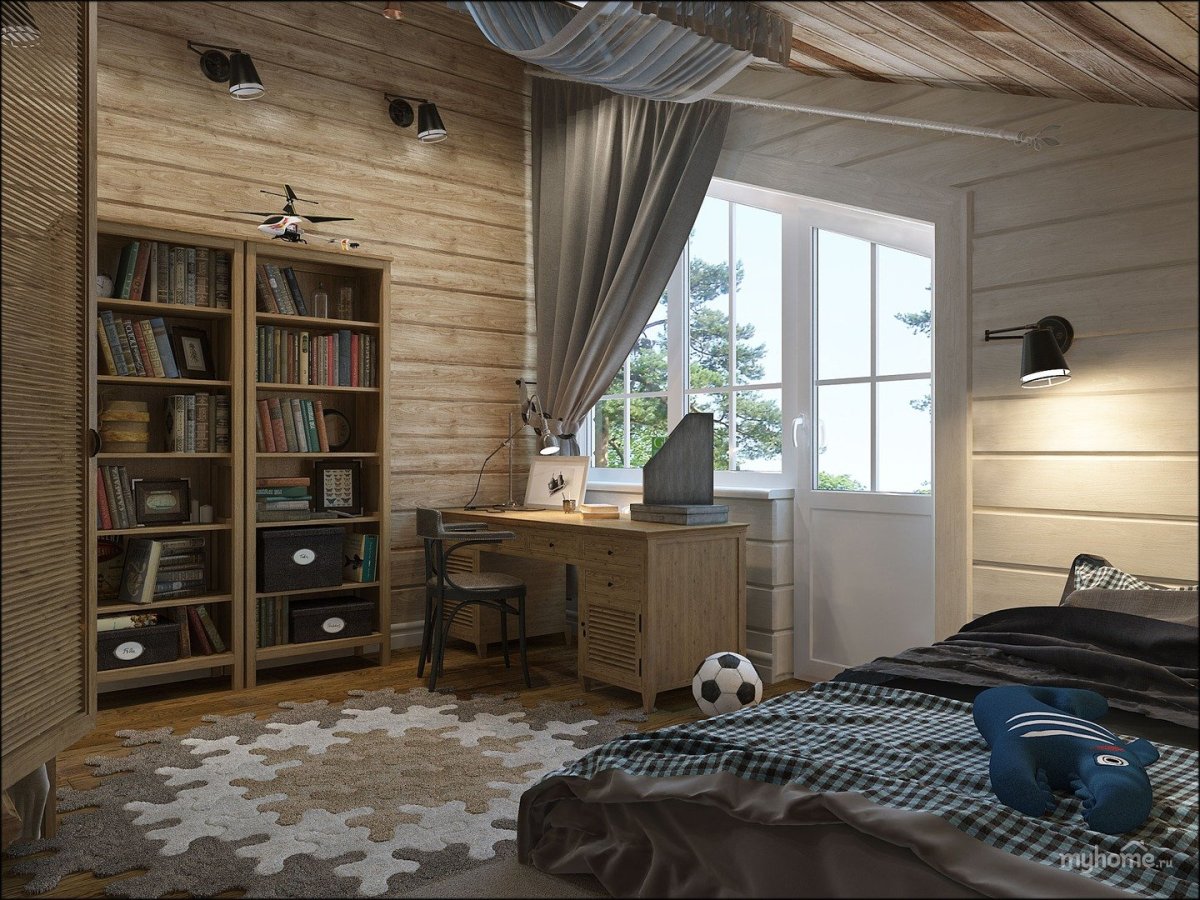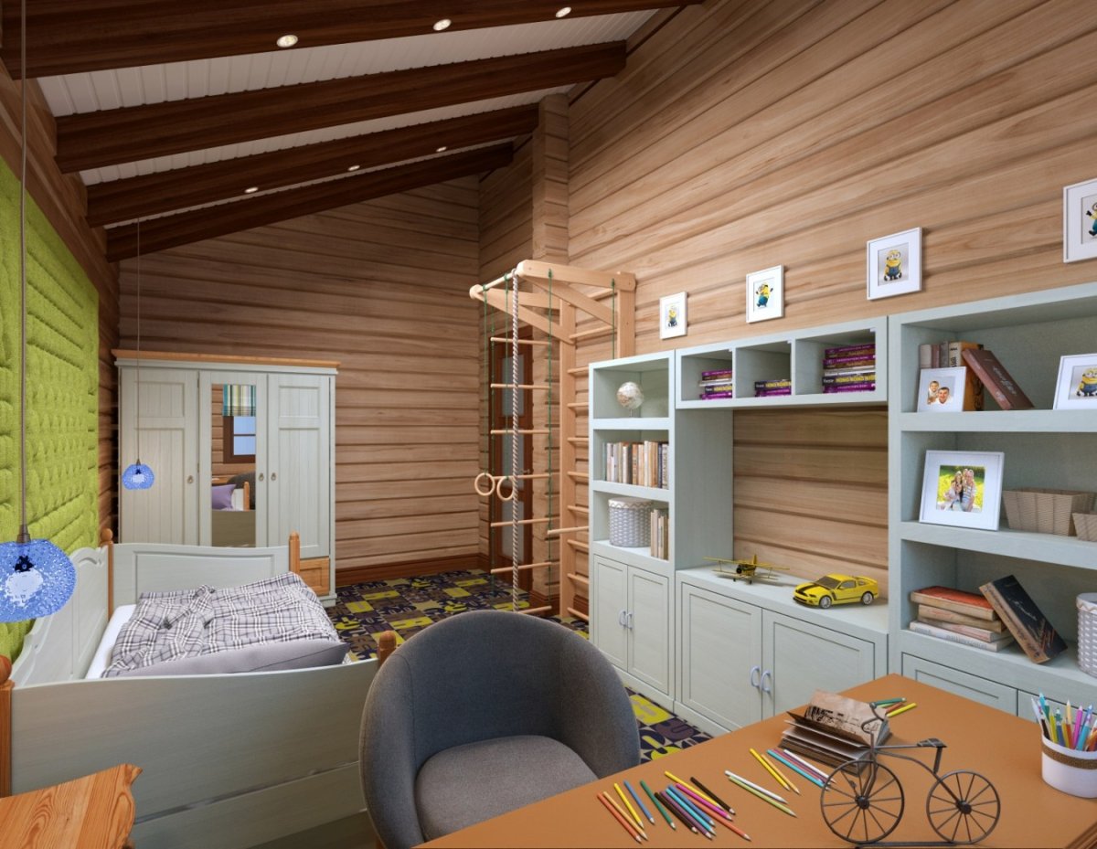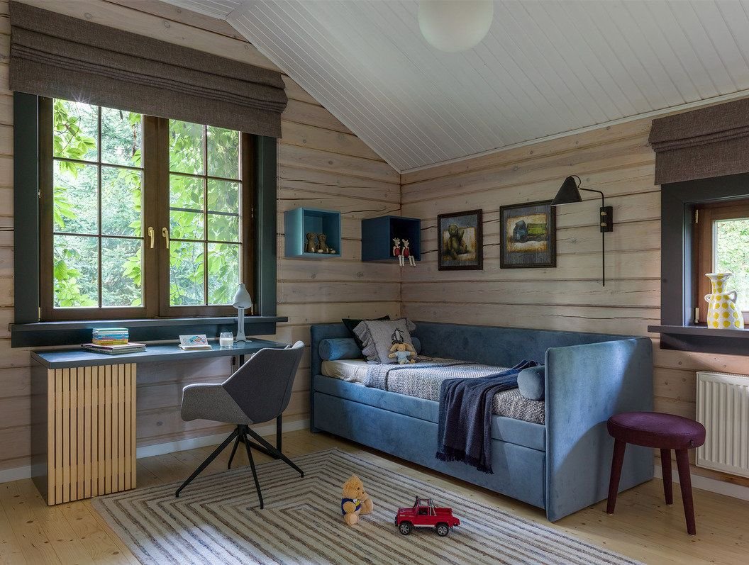 Комната для подростка мальчика в деревянном доме