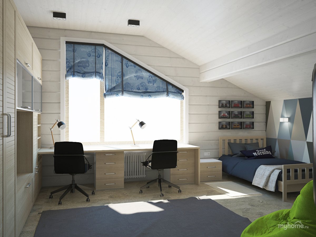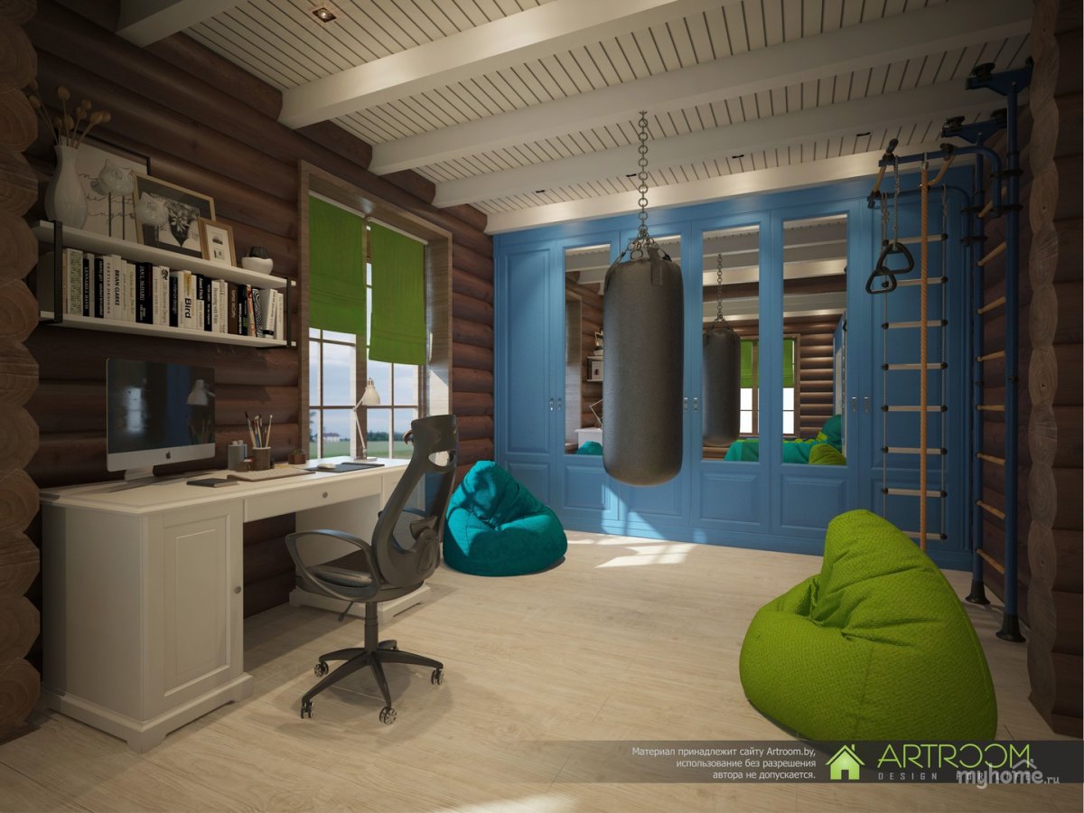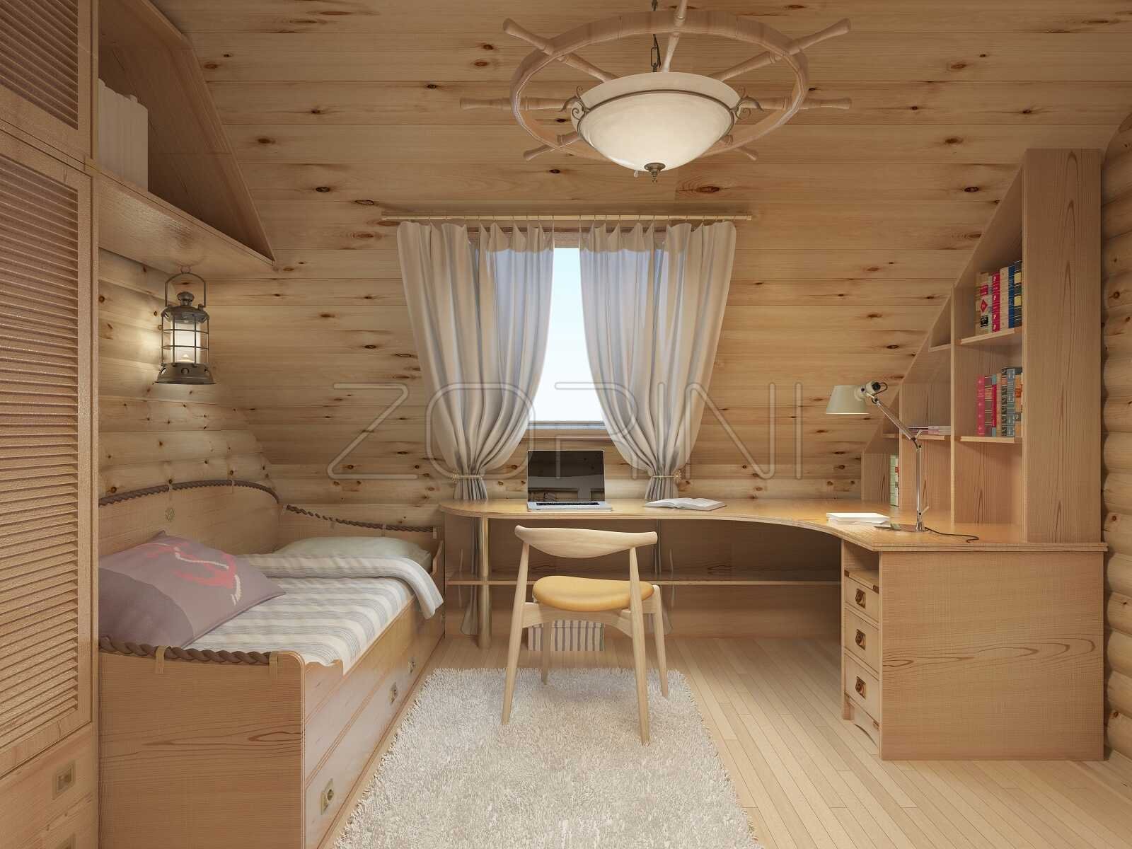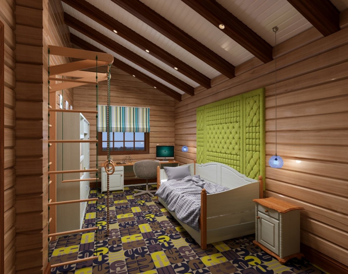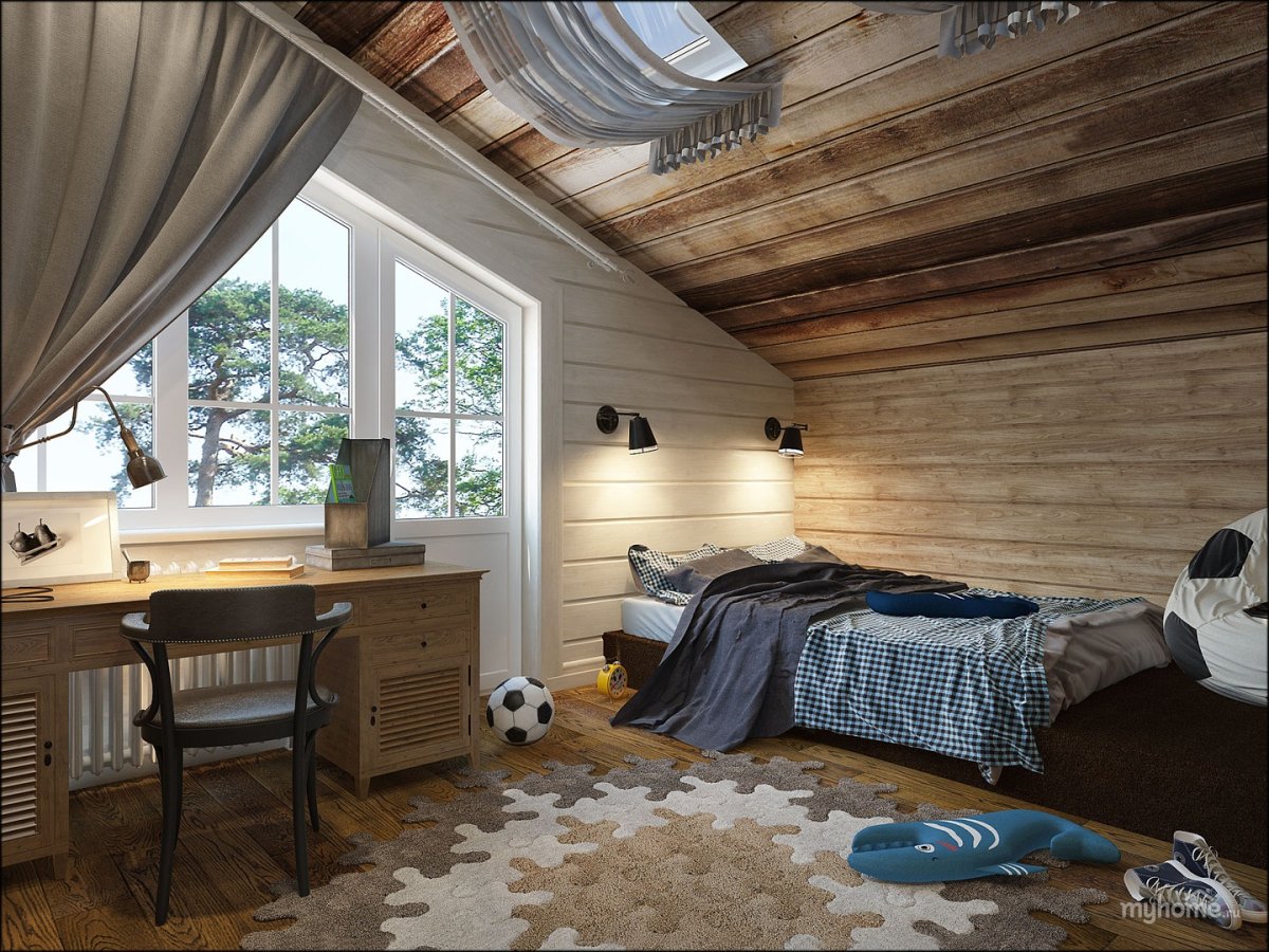 Комната для подростка мальчика в деревянном доме