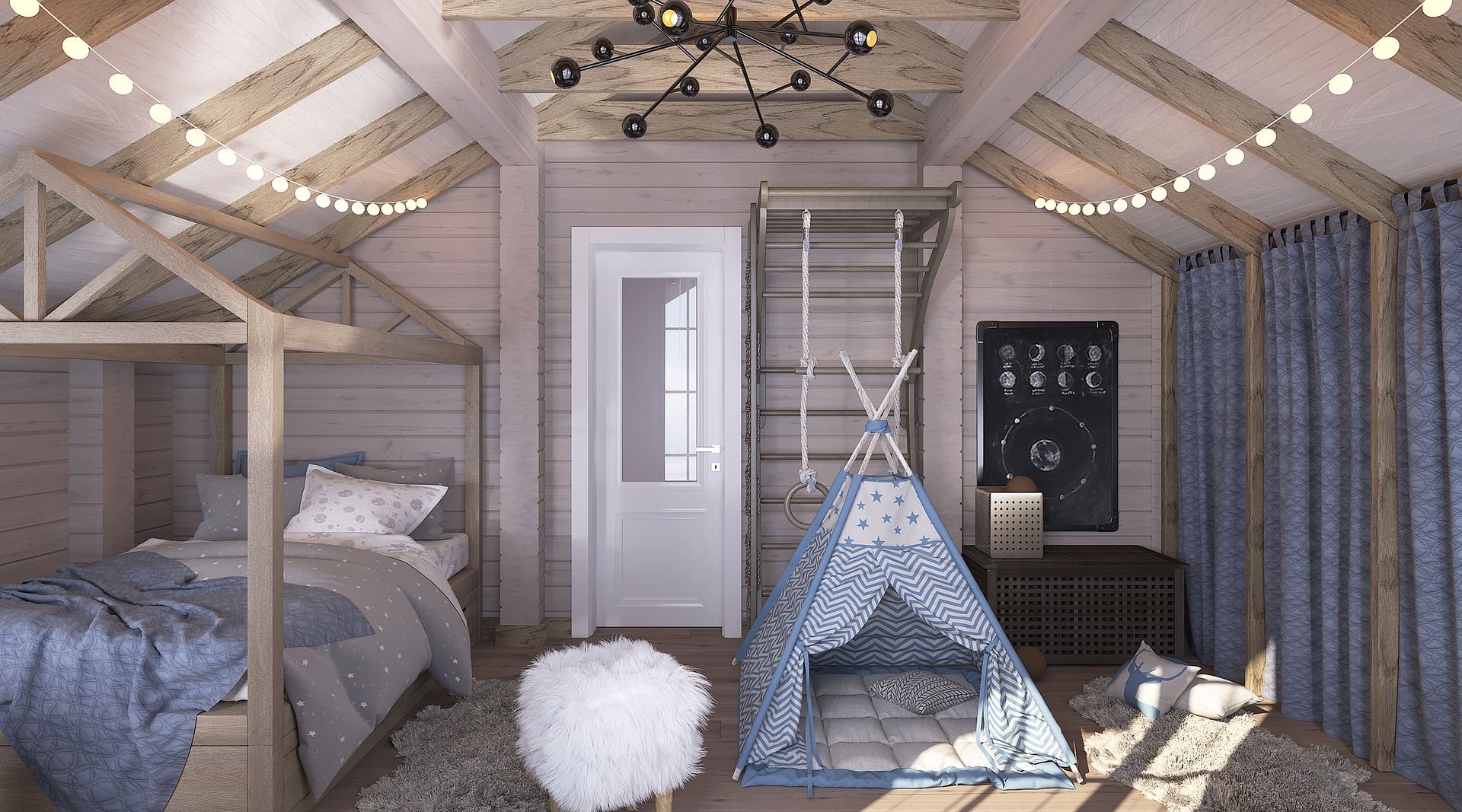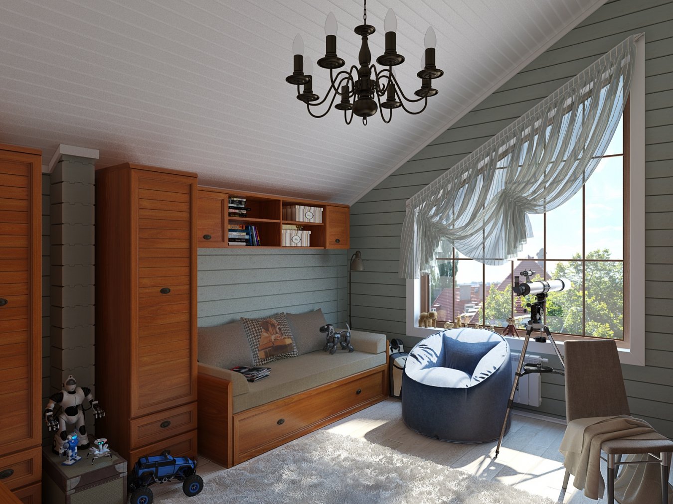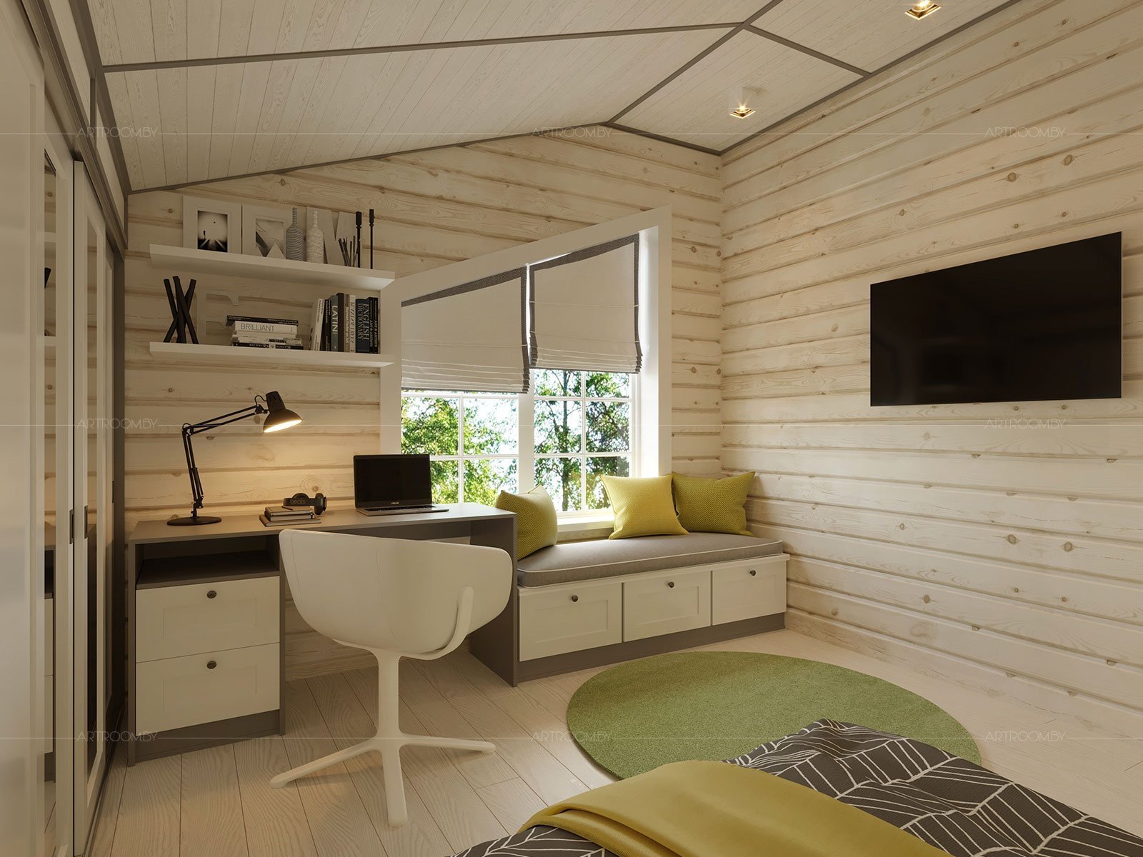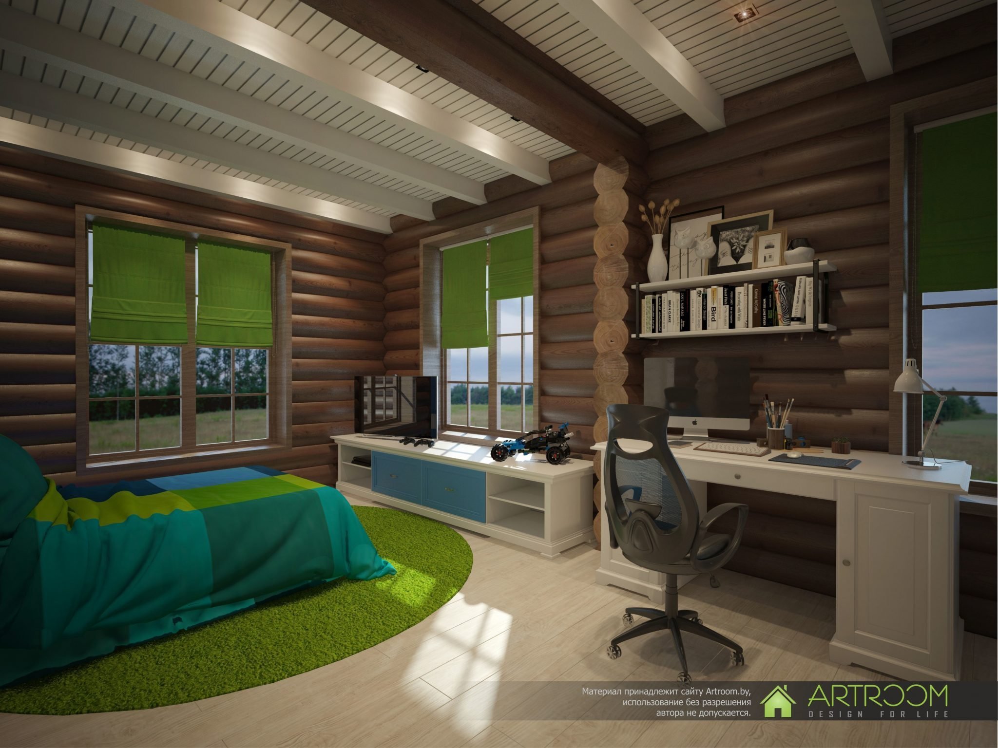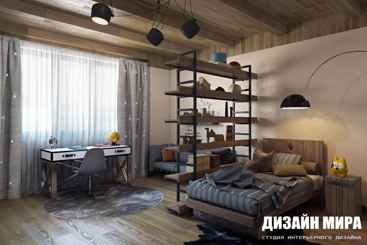 Комната для подростка мальчика в деревянном доме