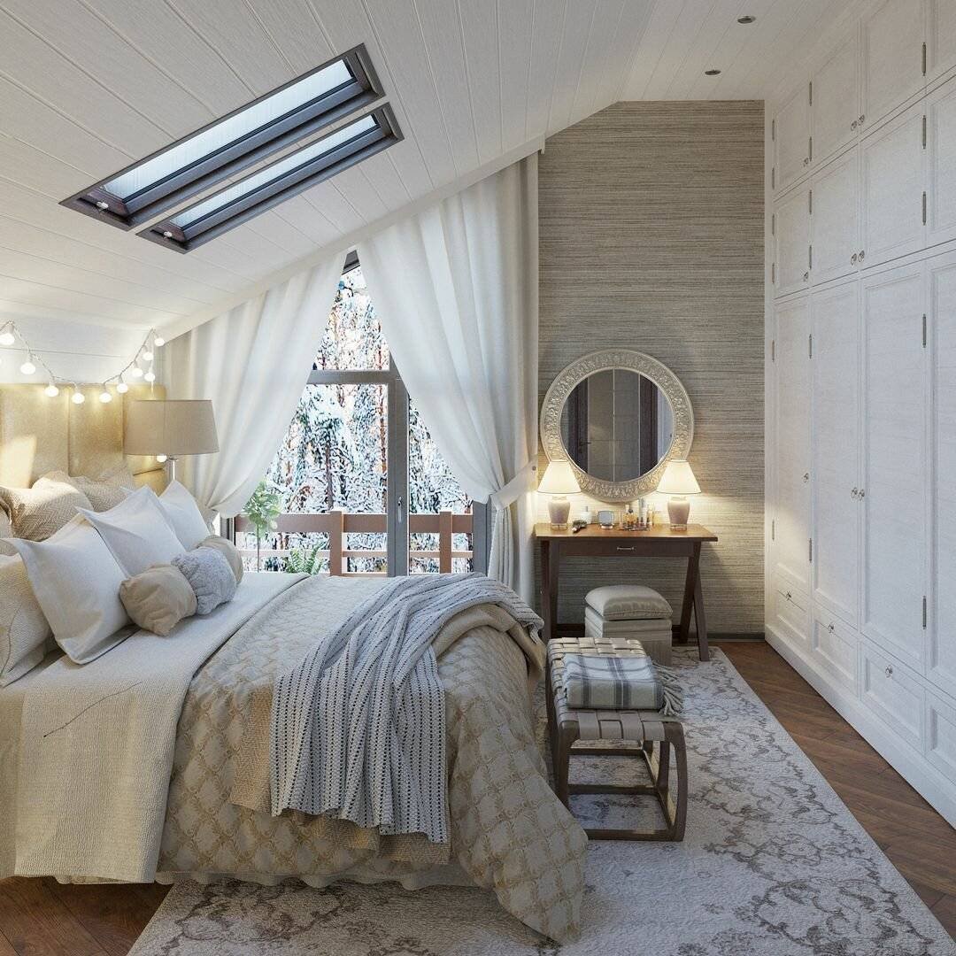 Интерьер спальни на мансарде