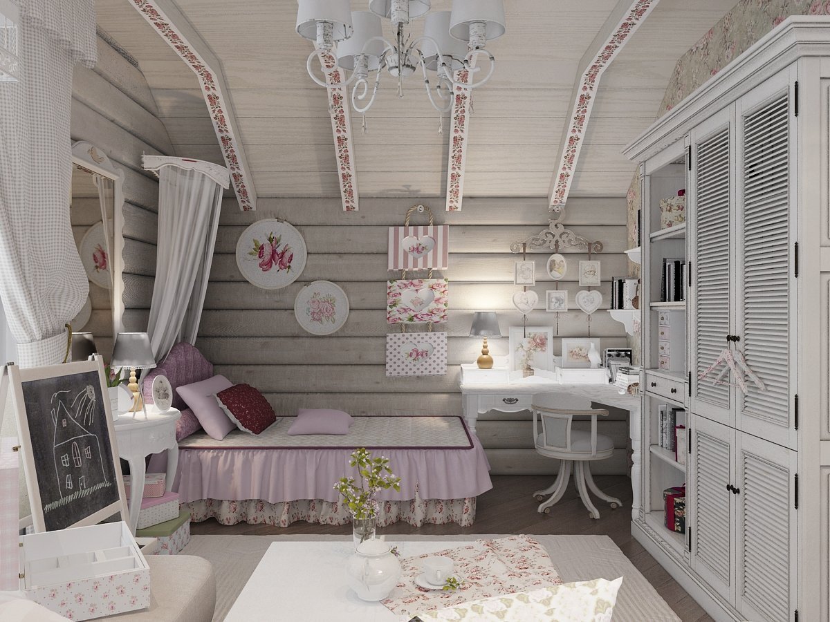 Комната для девочки в деревянном доме