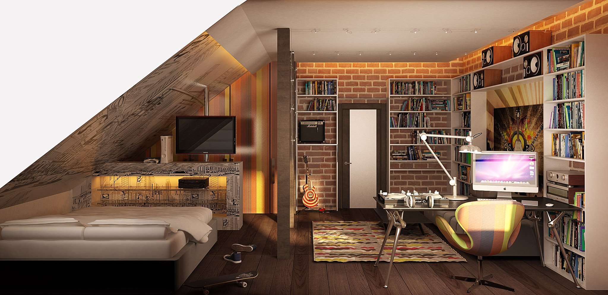 Комната на мансарде для подростка