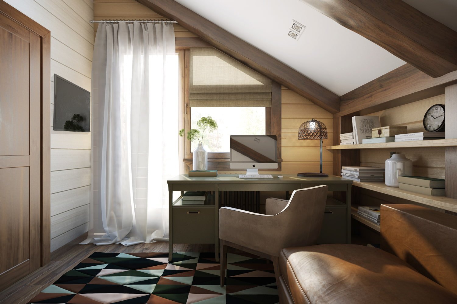 Кабинет в мансарде в загородном доме