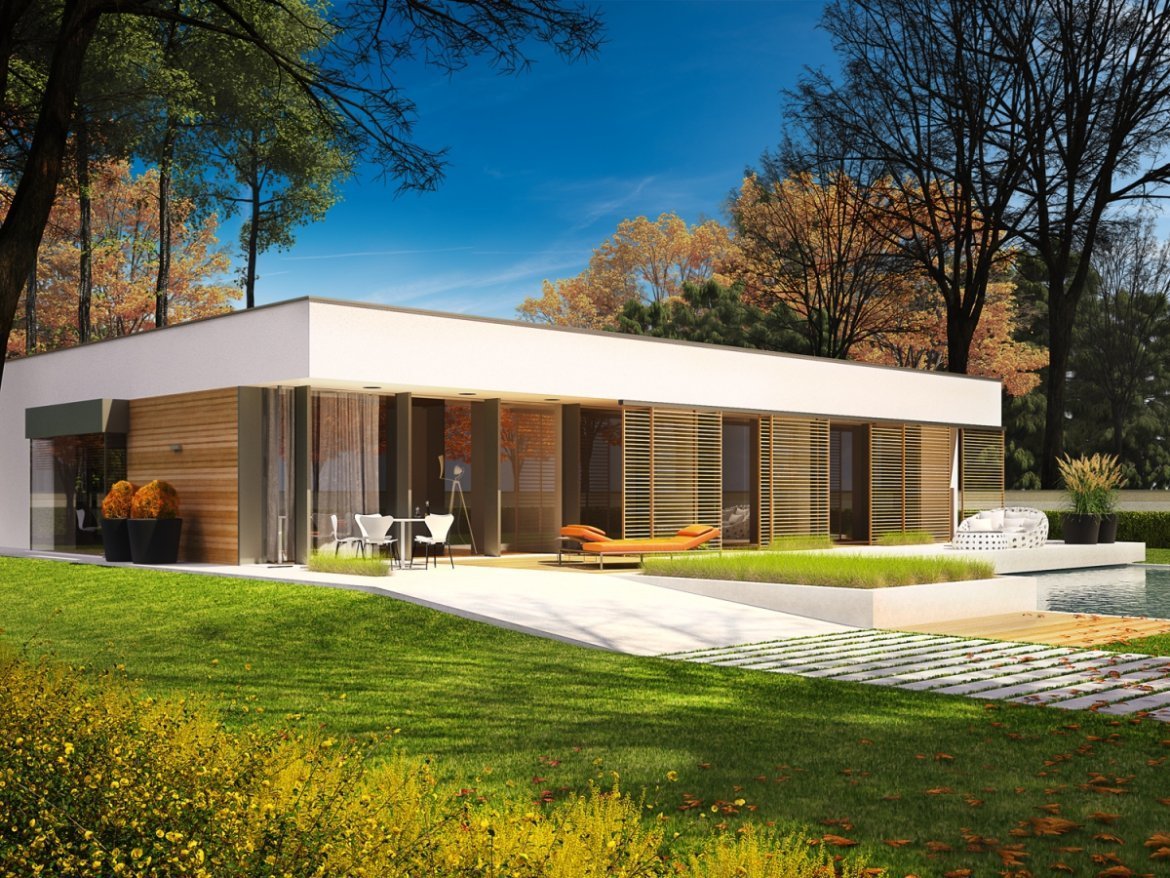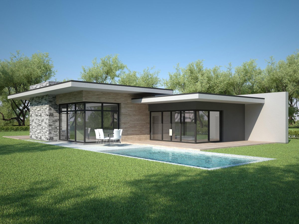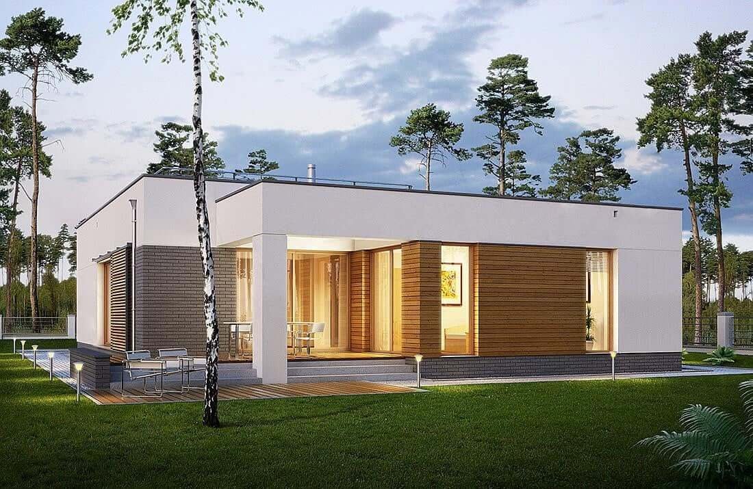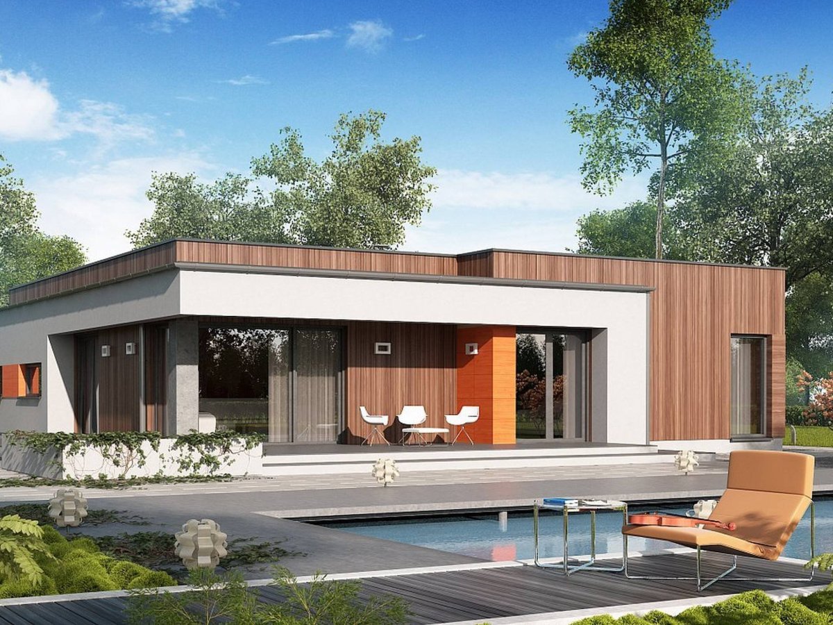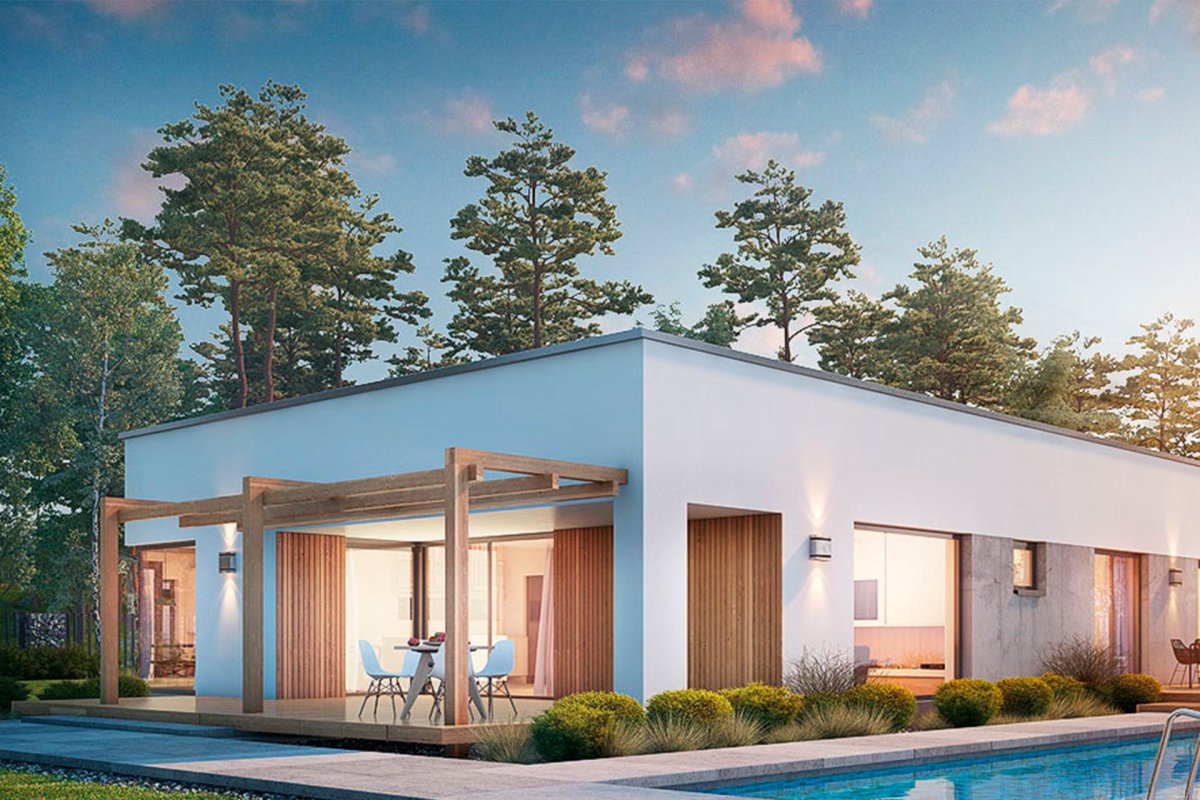 Дом бунгало с плоской крышей