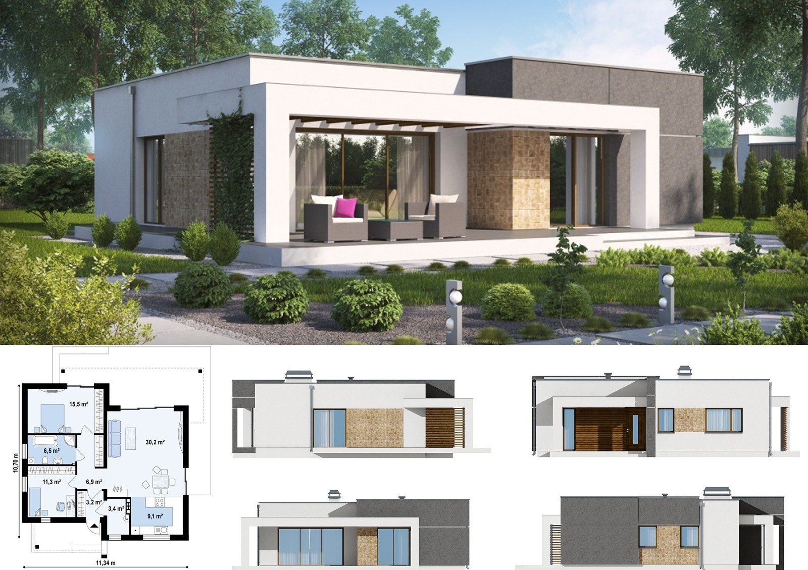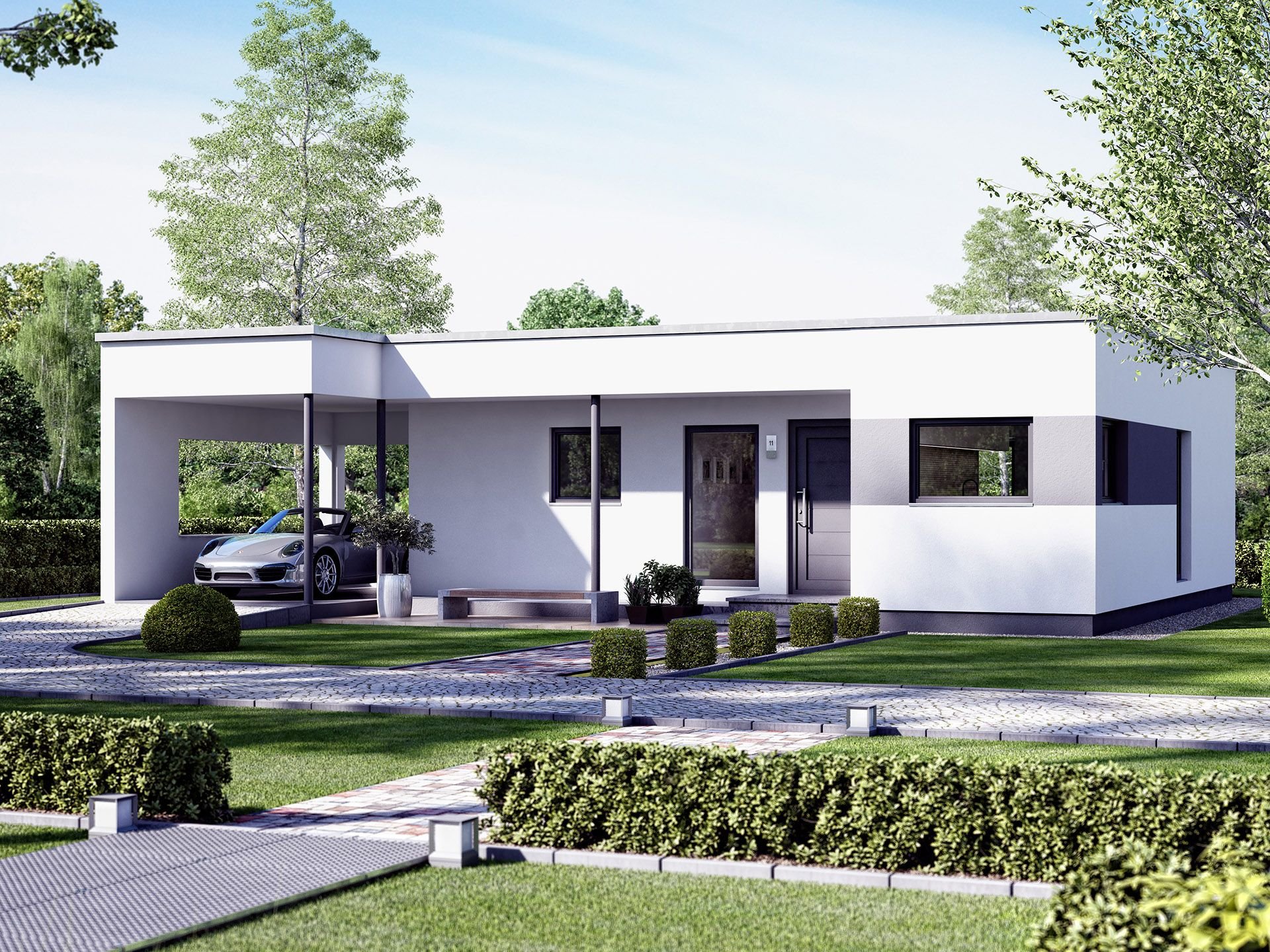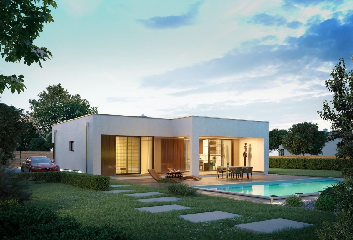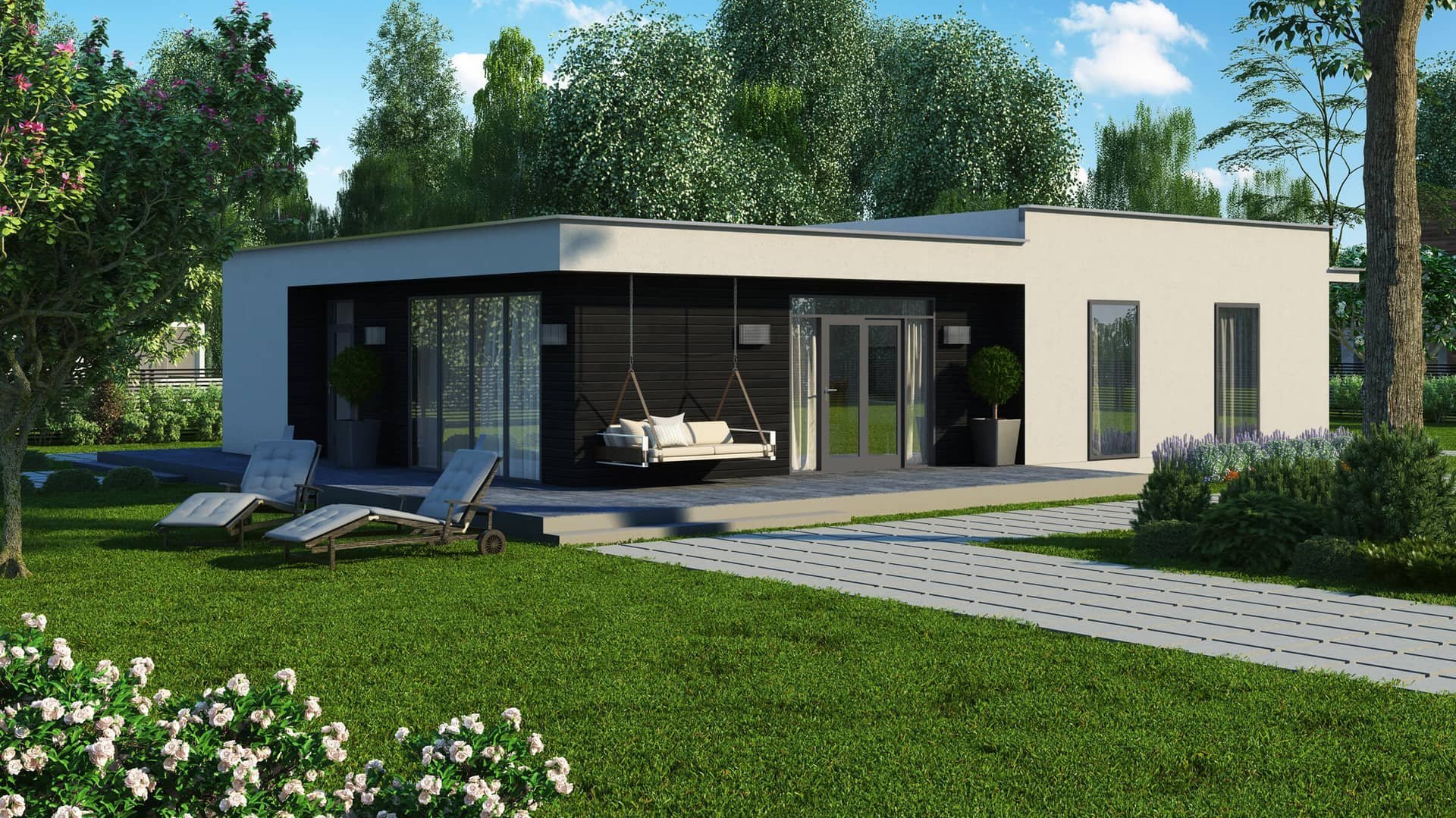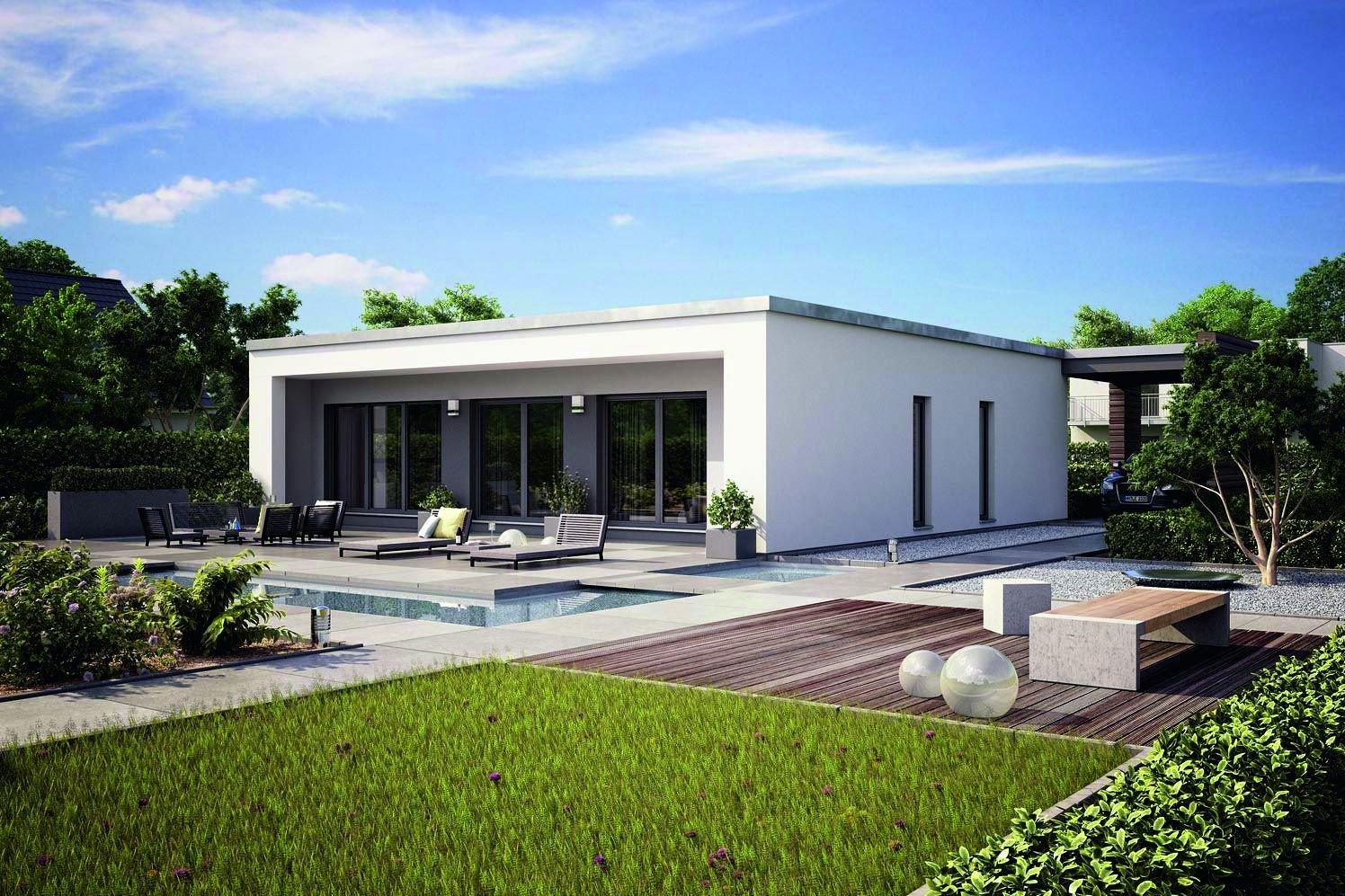 Дом бунгало с плоской крышей