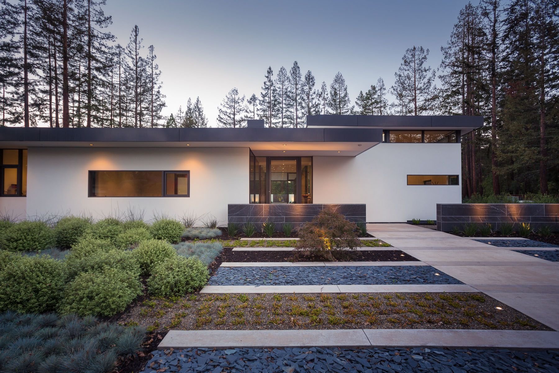 Угловой дом с плоской крышей и панорамными окнами