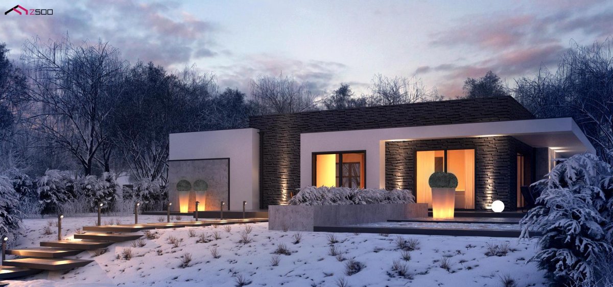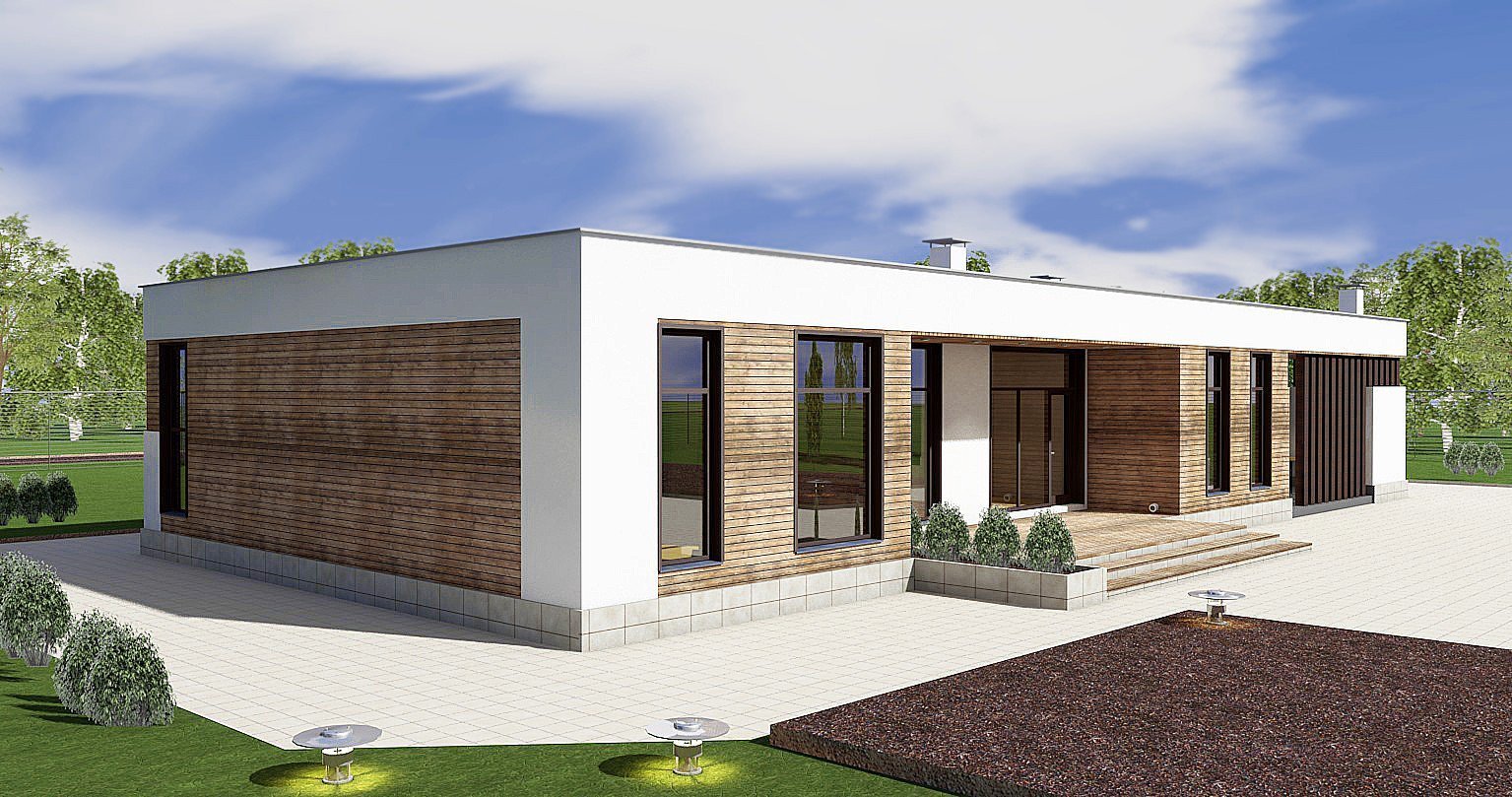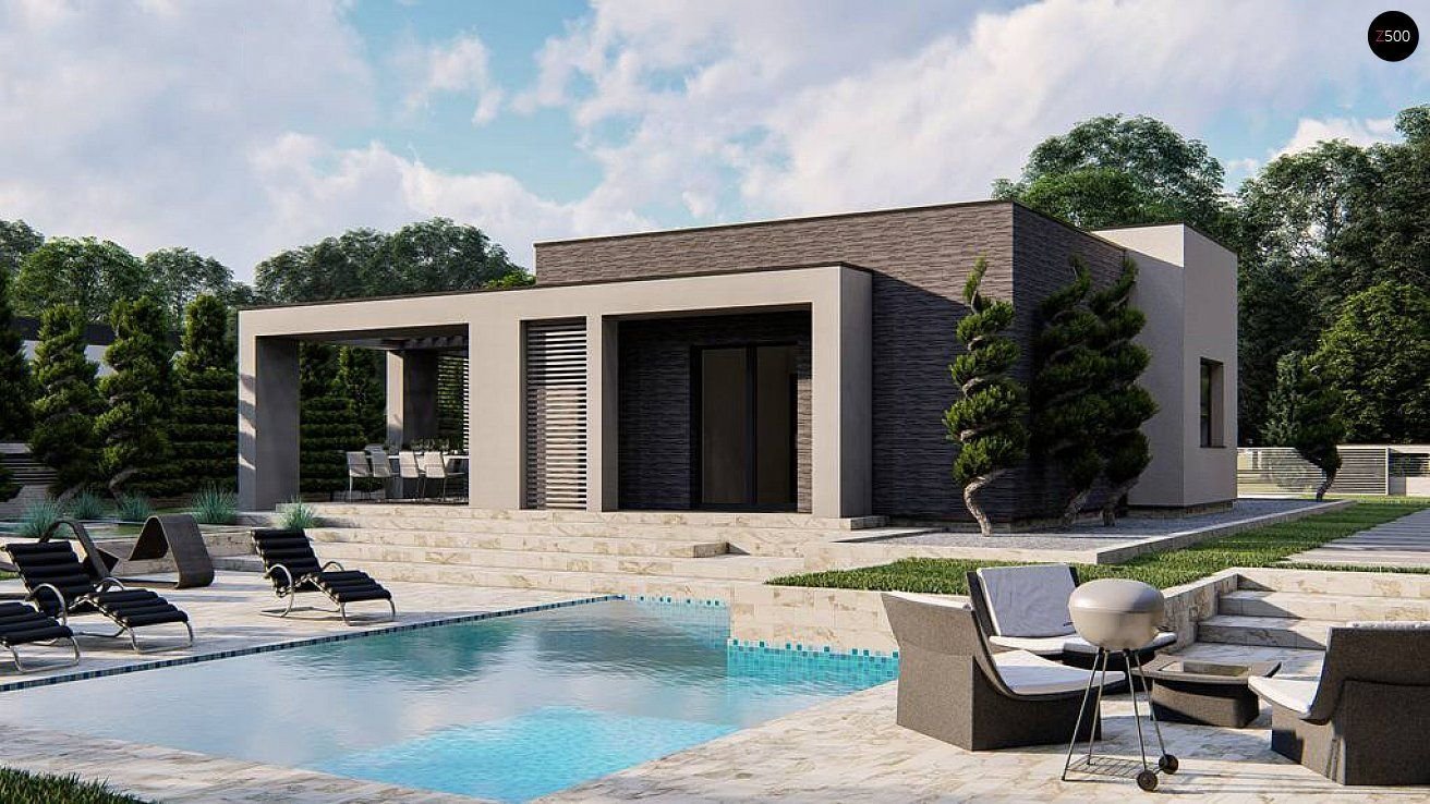 Одноэтажный дом z500 с плоской крышей