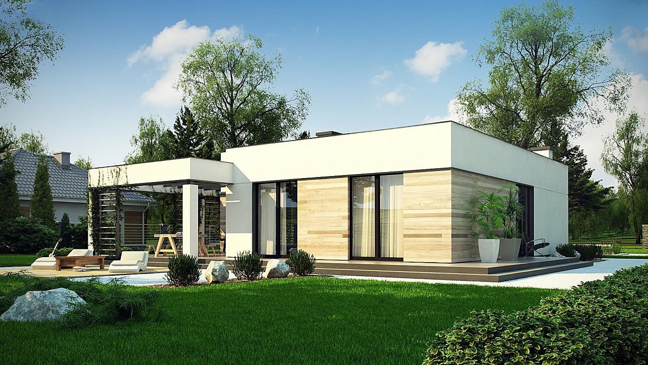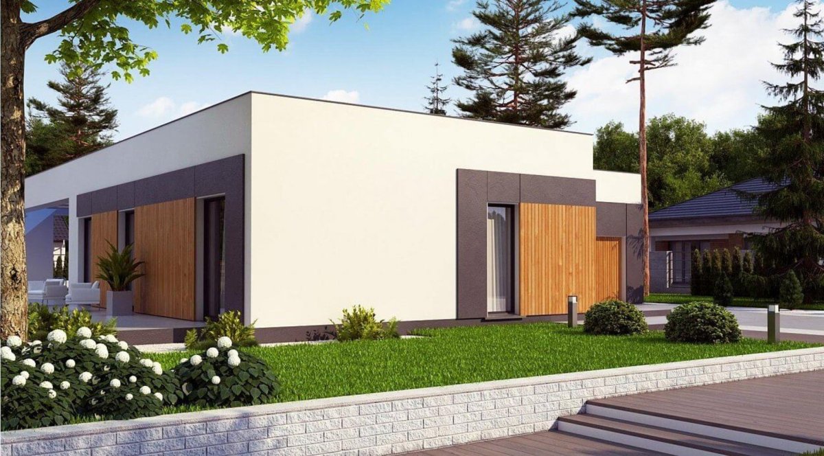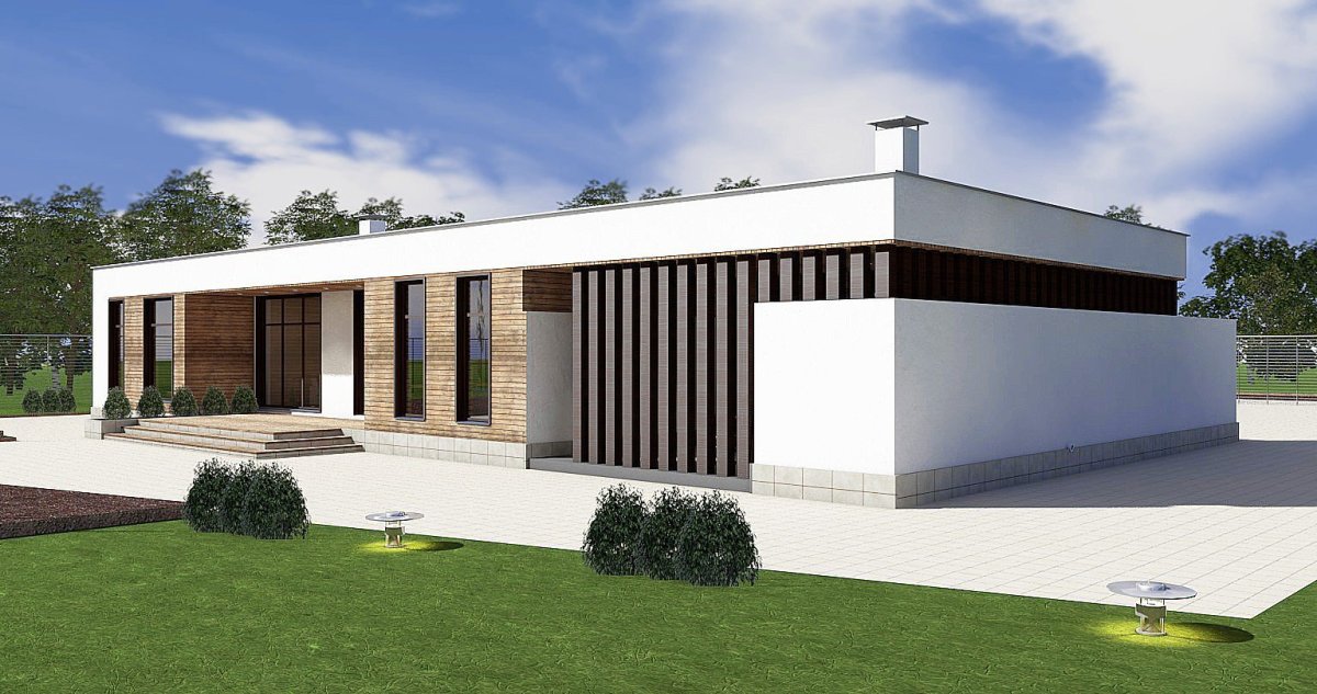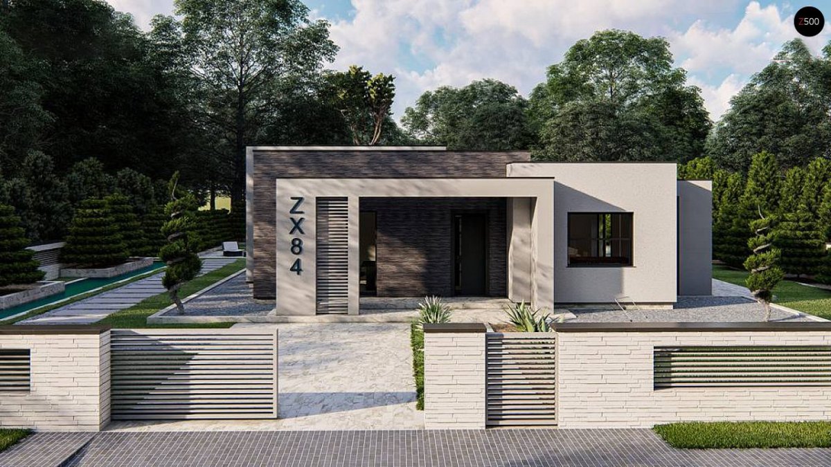 Zx84 - одноэтажный современный дом с плоской крышей