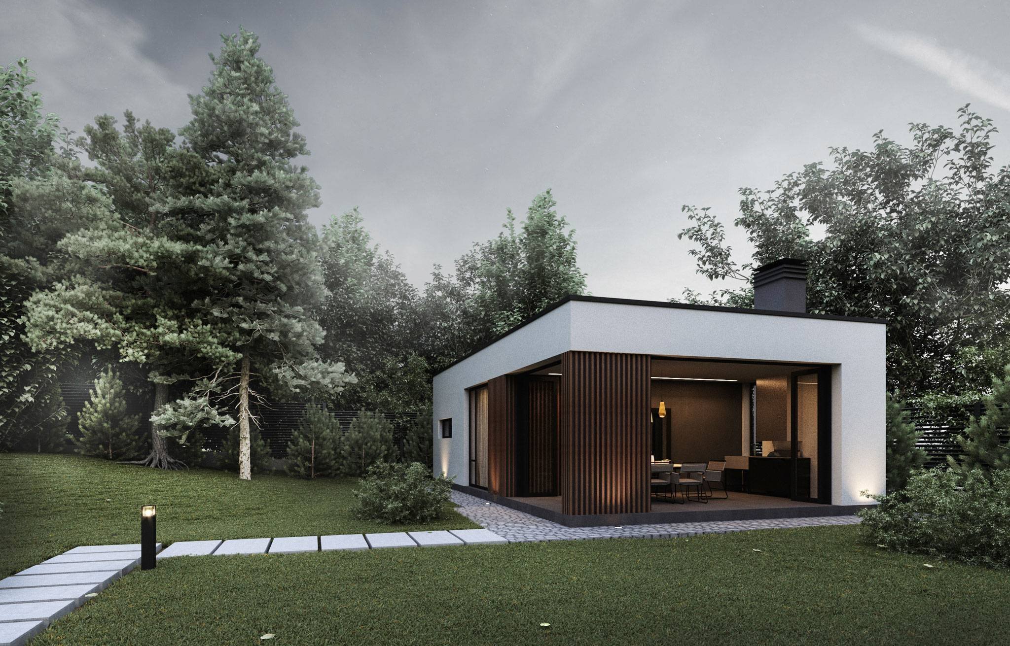 Современный небольшой домик с плоской крышей