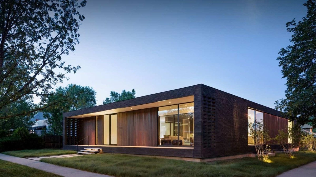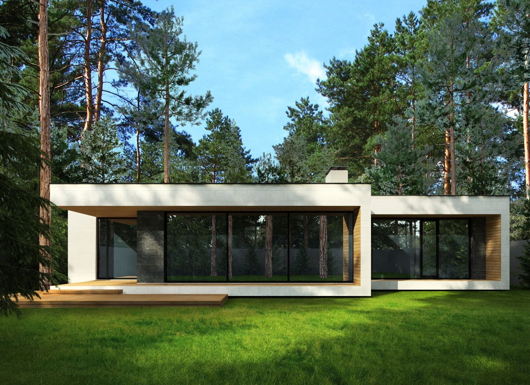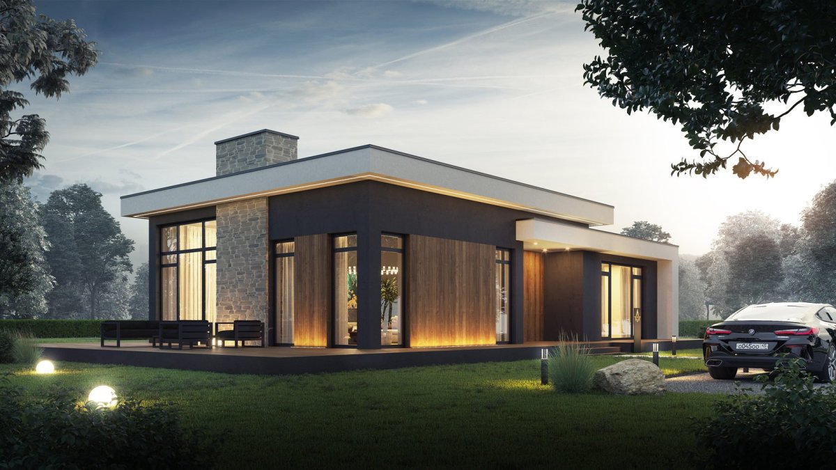Дом с плоской крышей и панорамными окнами одноэтажный