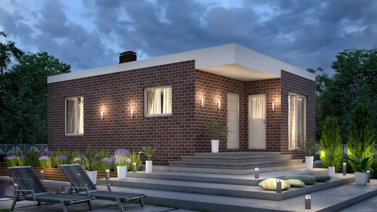 Дом с плоской кровлей одноэтажный 50кв