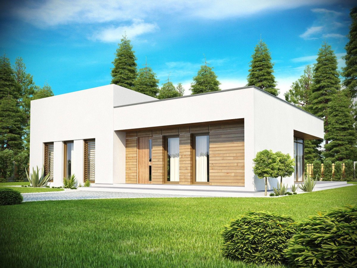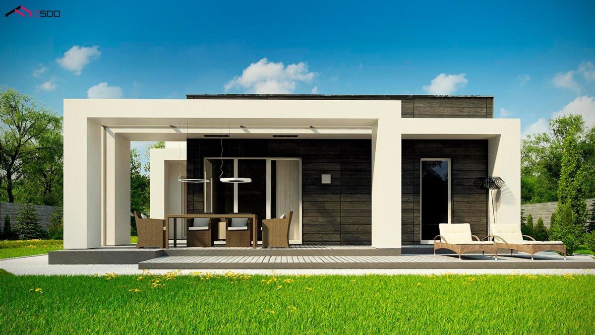 Zx83 одноэтажный современный дом с плоской
