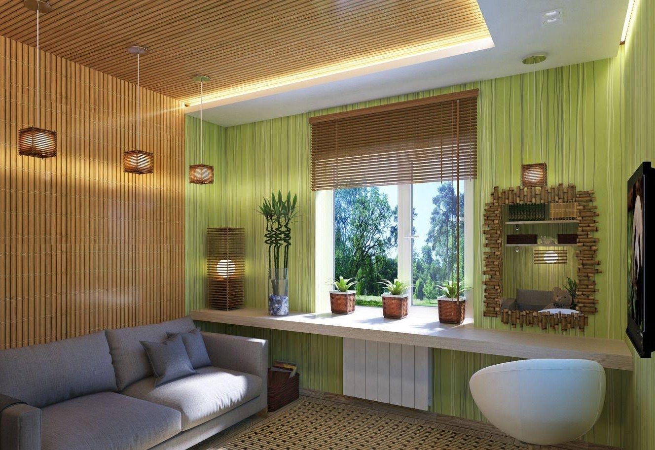 Экостиль в гостиной бамбук