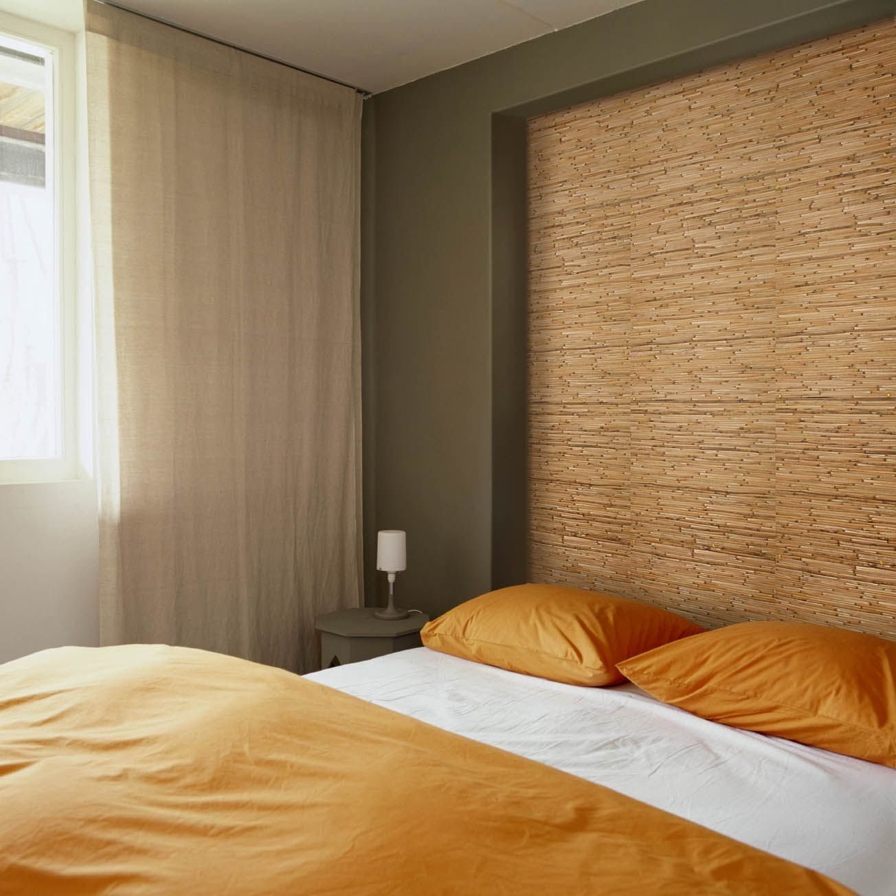 Бамбуковая стена в интерьере спальни