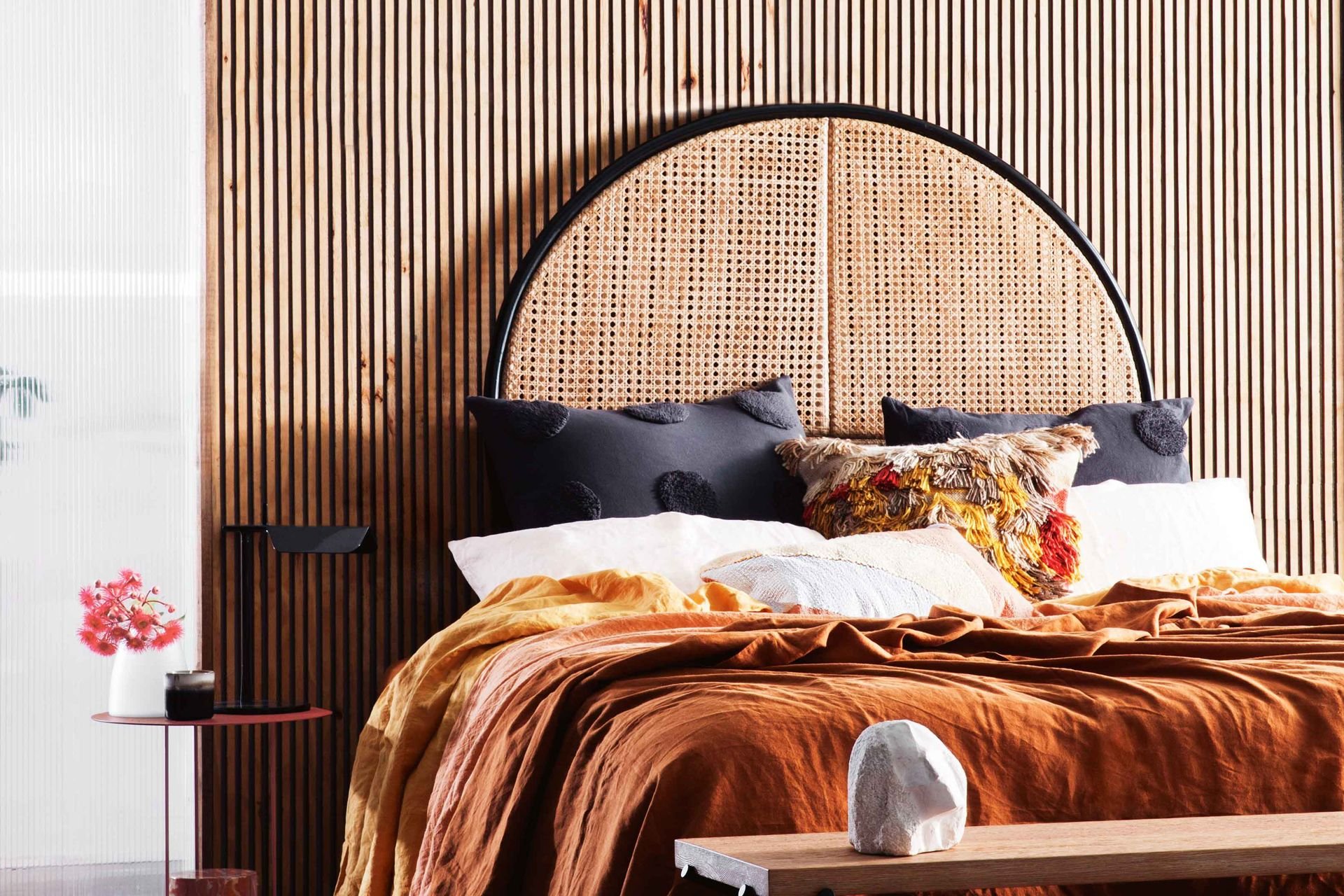 Кровать с плетеным изголовьем