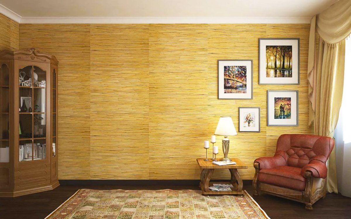 Отделка стен бамбуковым полотном