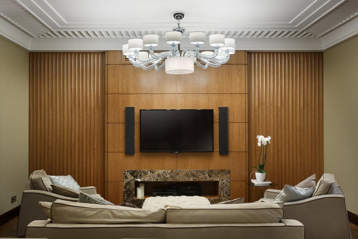 Гостиная с деревянными панелями