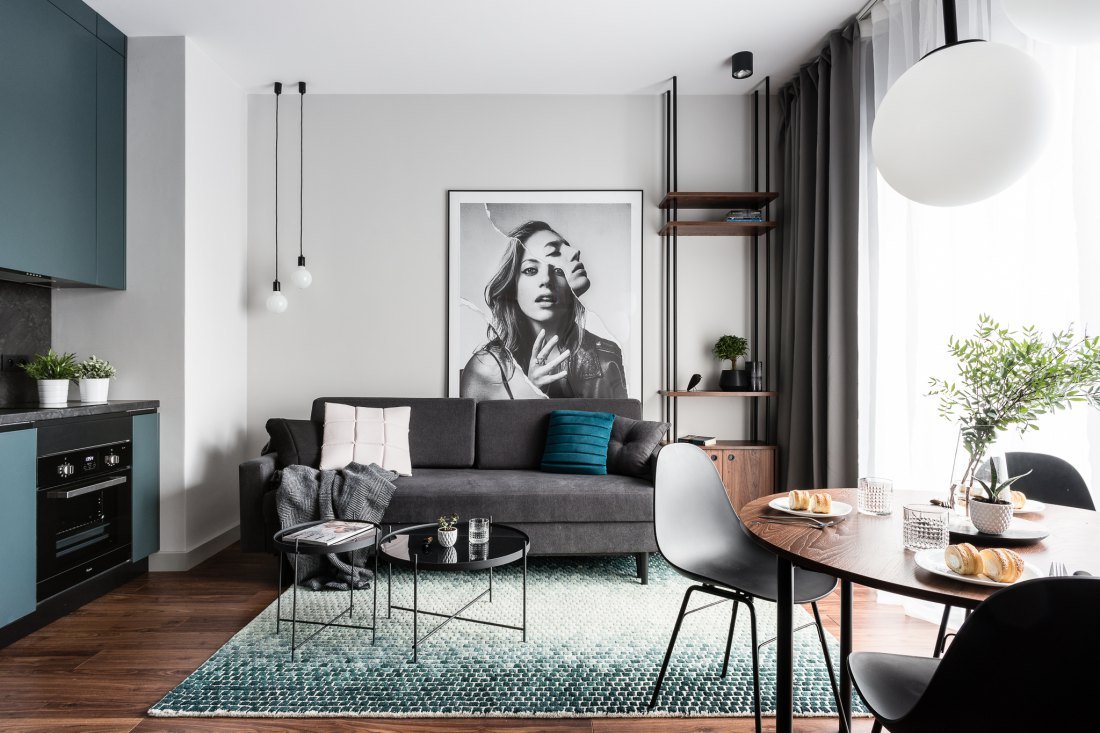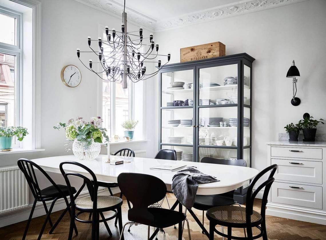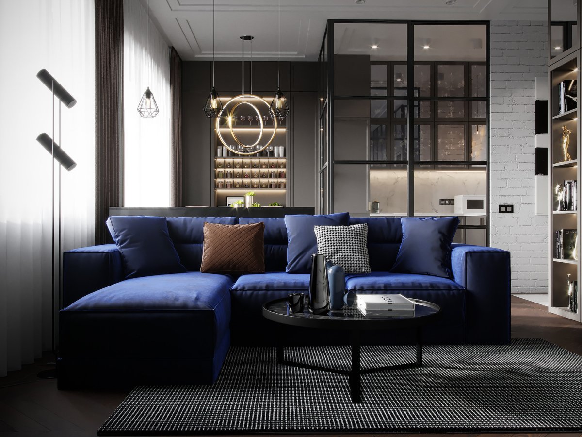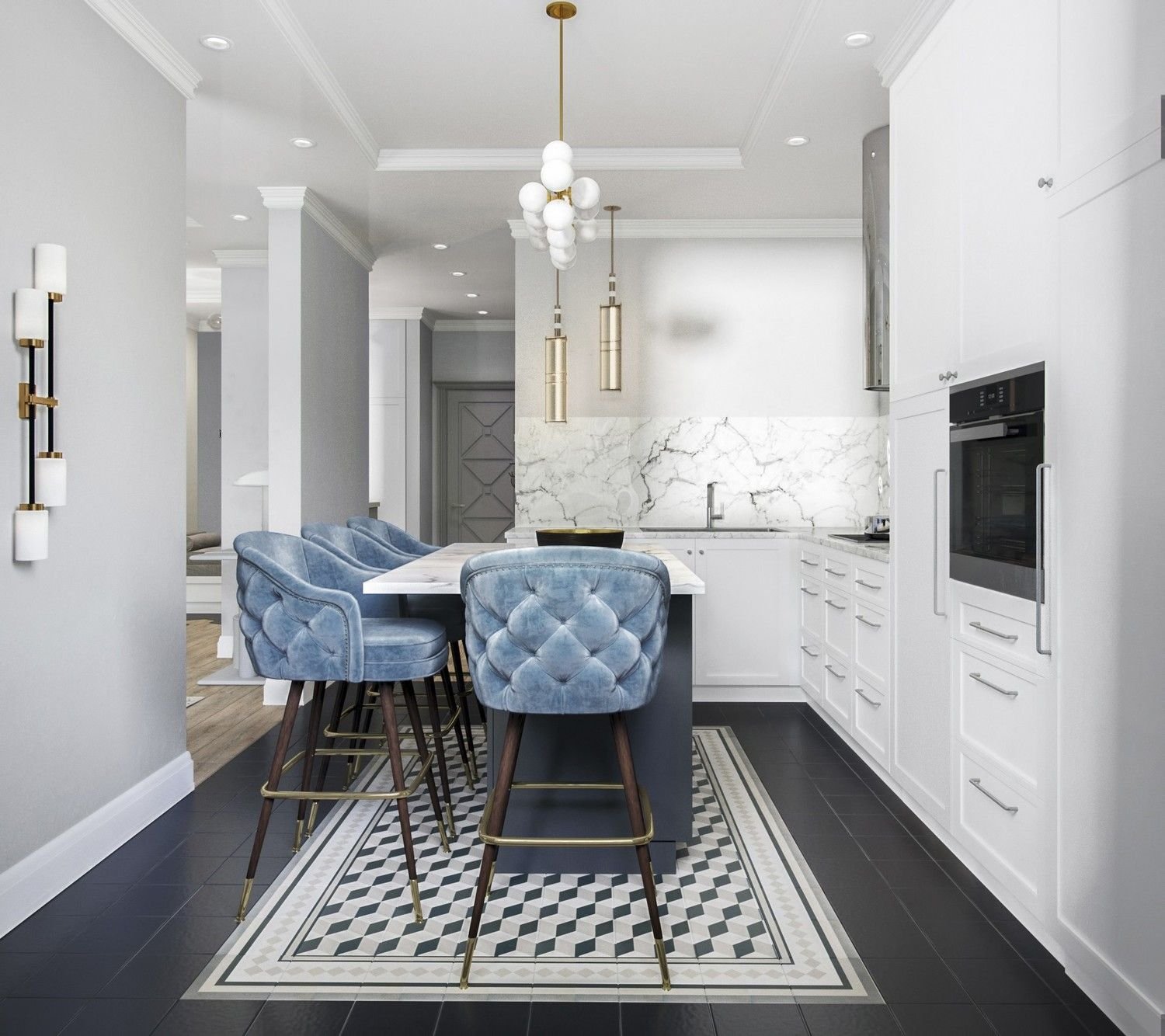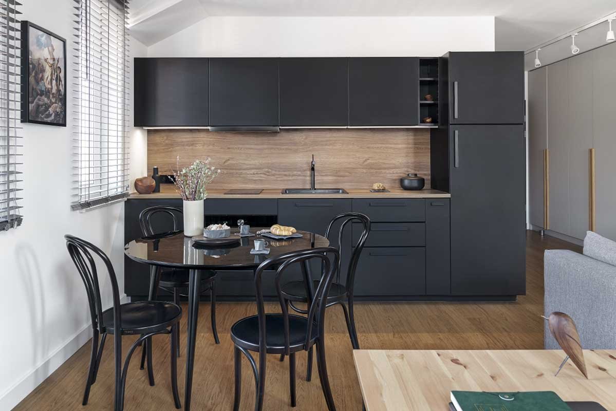 Кухня гостиная с ЗАКУТКОМ В черно белых тонах