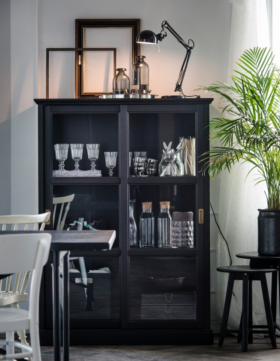 Шкаф витрина буфет черный икеа