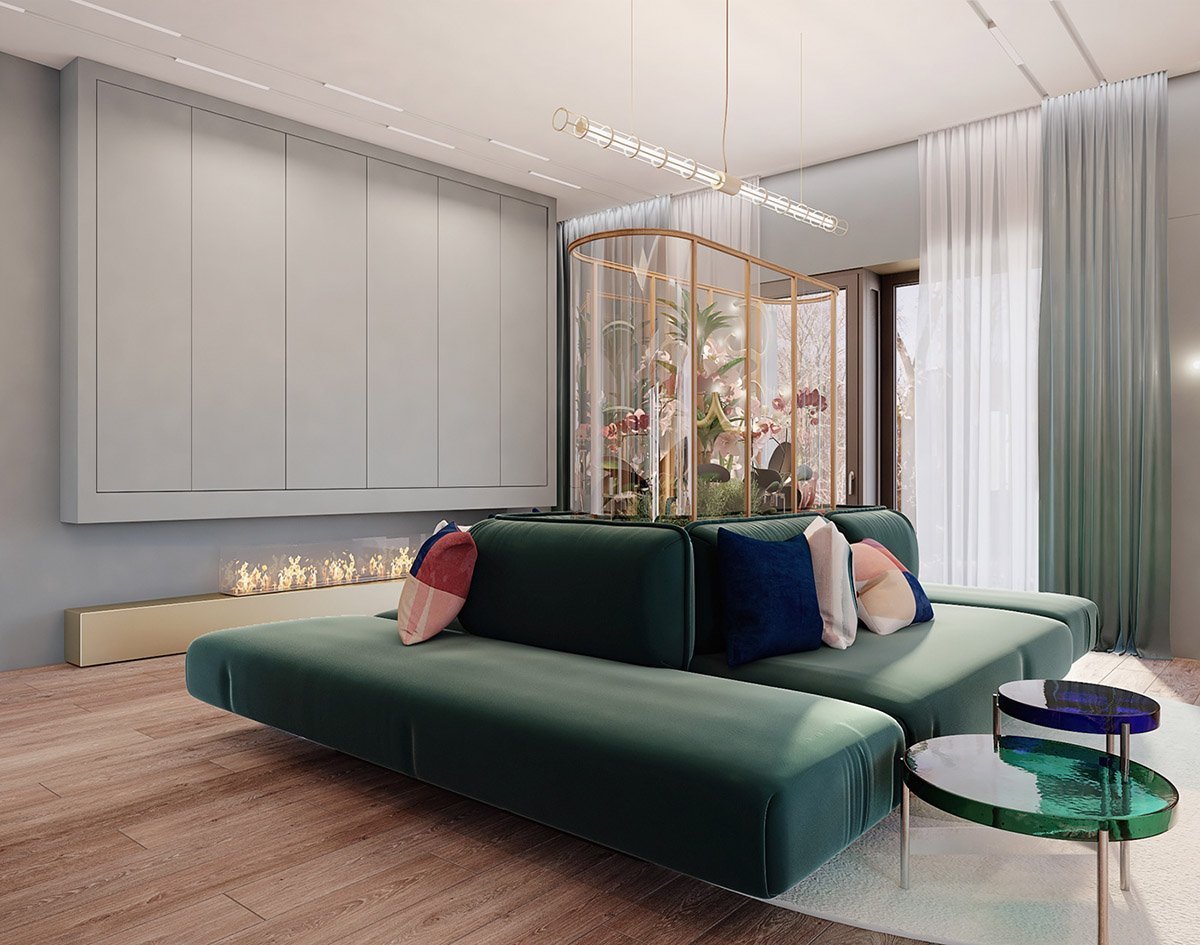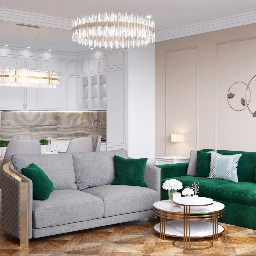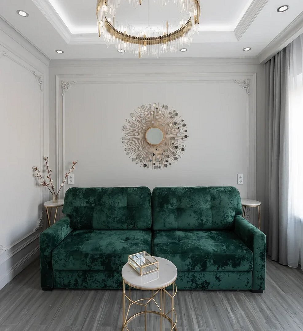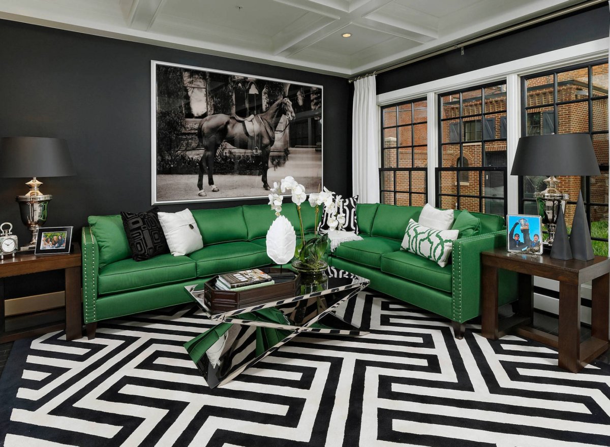 Гостиная с изумрудным диваном