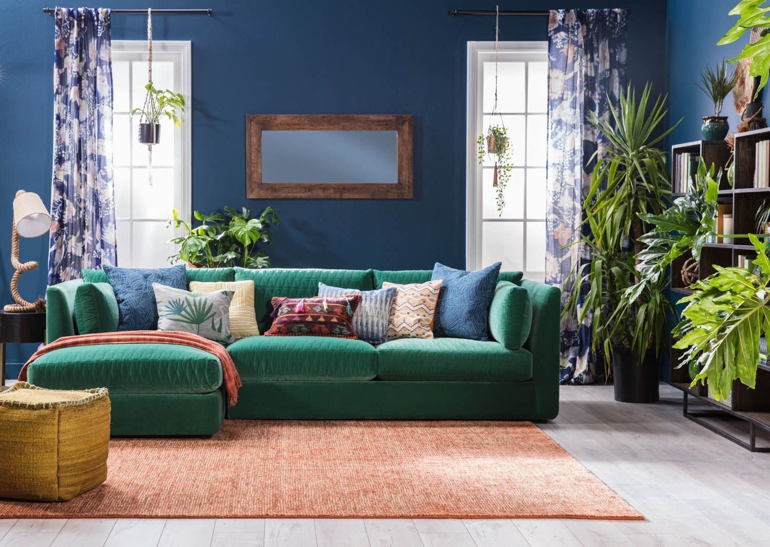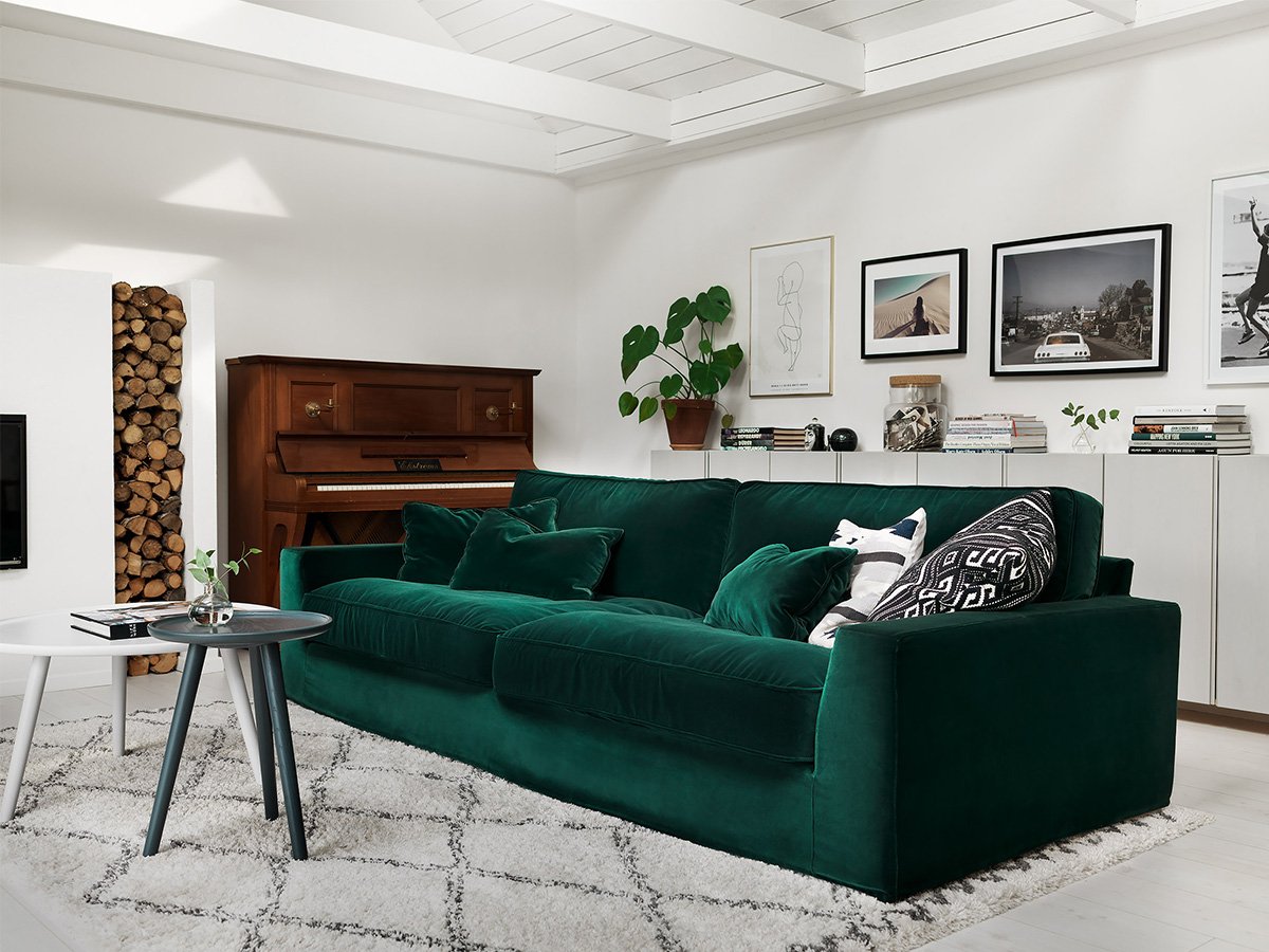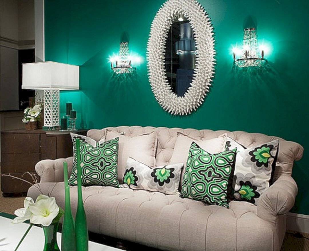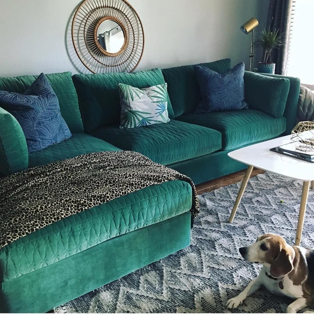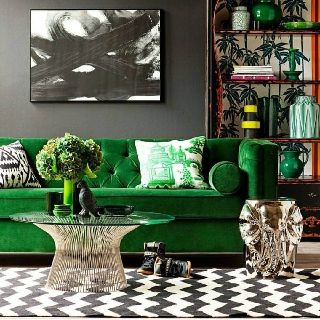 Диван цвет изумруд в интерьере