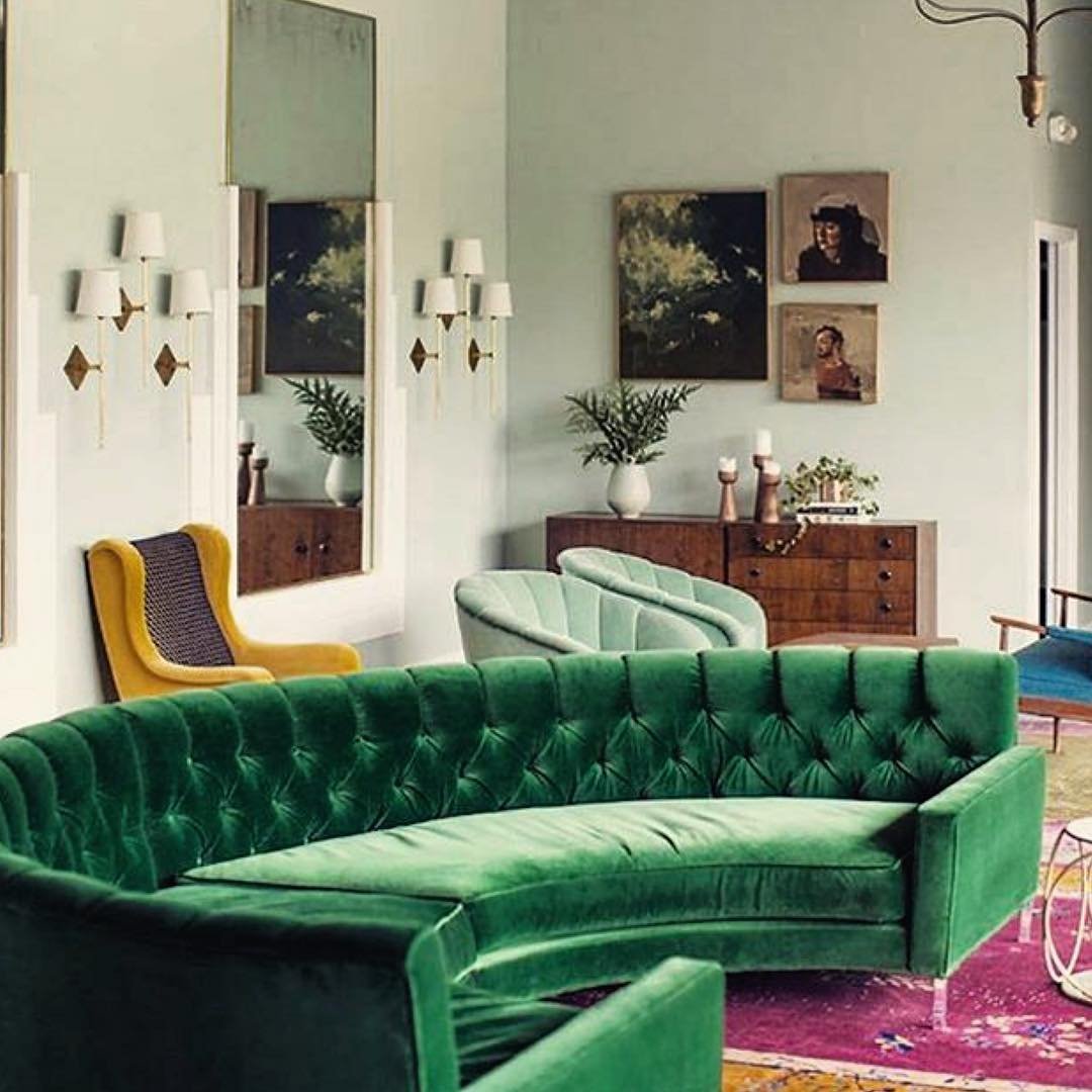 Изумрудный диван в интерьере